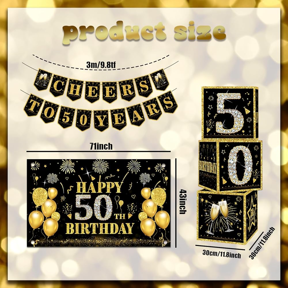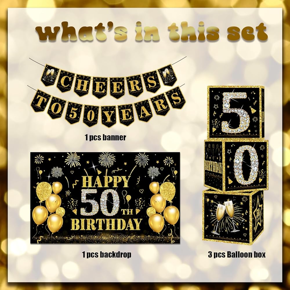 Package contents: You will receive a 60th birthday decorations for men set, including 1pcs banner with light, 1pcs backdrop, 1pcs 50th foil balloon, 3pcs balloon boxes, 80pcs balloons, and some accessories