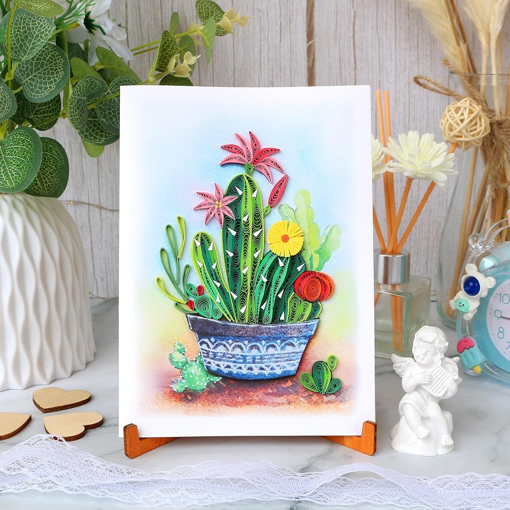 KingKraft Cactus Quilling Card, Handcrafted Greeting Card for All Occasions, Birthday, Thinking of You, Get Well, Anniversary Card for Wife, Valentines Day, Mothers Day Card, Blank Inside