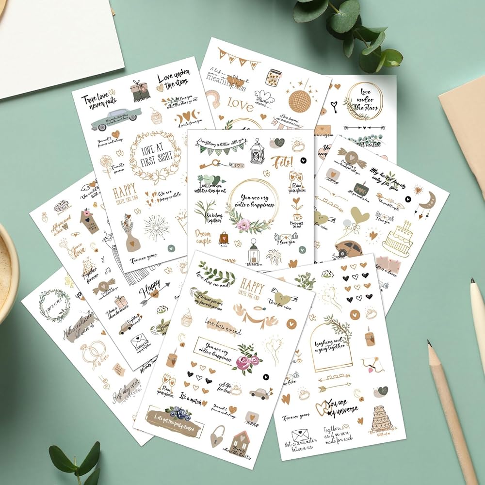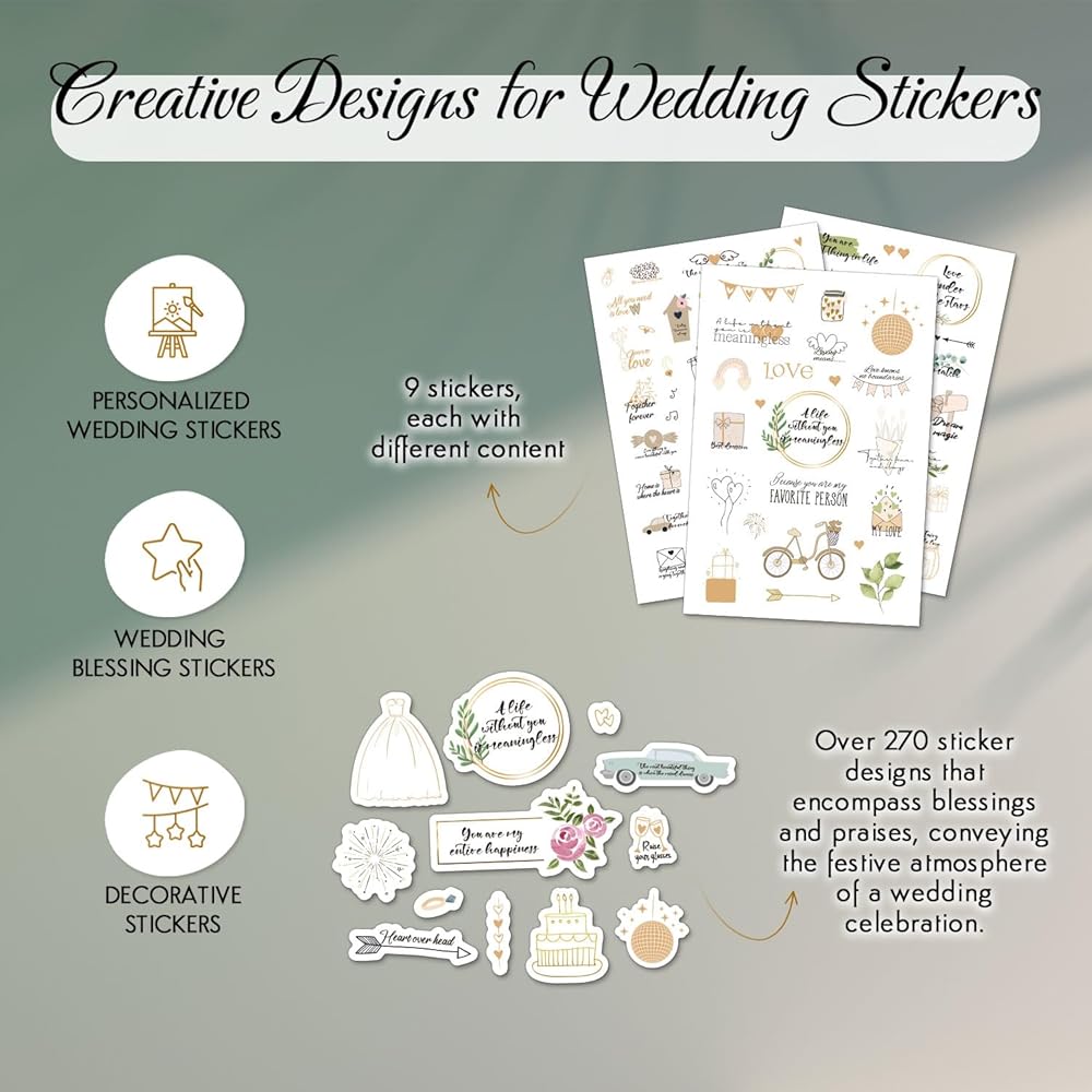 • LOVE DESIGNED WEDDING STICKERS - You will receive 9 pages of stickers for your wedding guestbook. All stickers are individually designed with love. With the wedding sticker set, it is easy for you to create the centerpiece, creatively designed guestbook, or photo album.