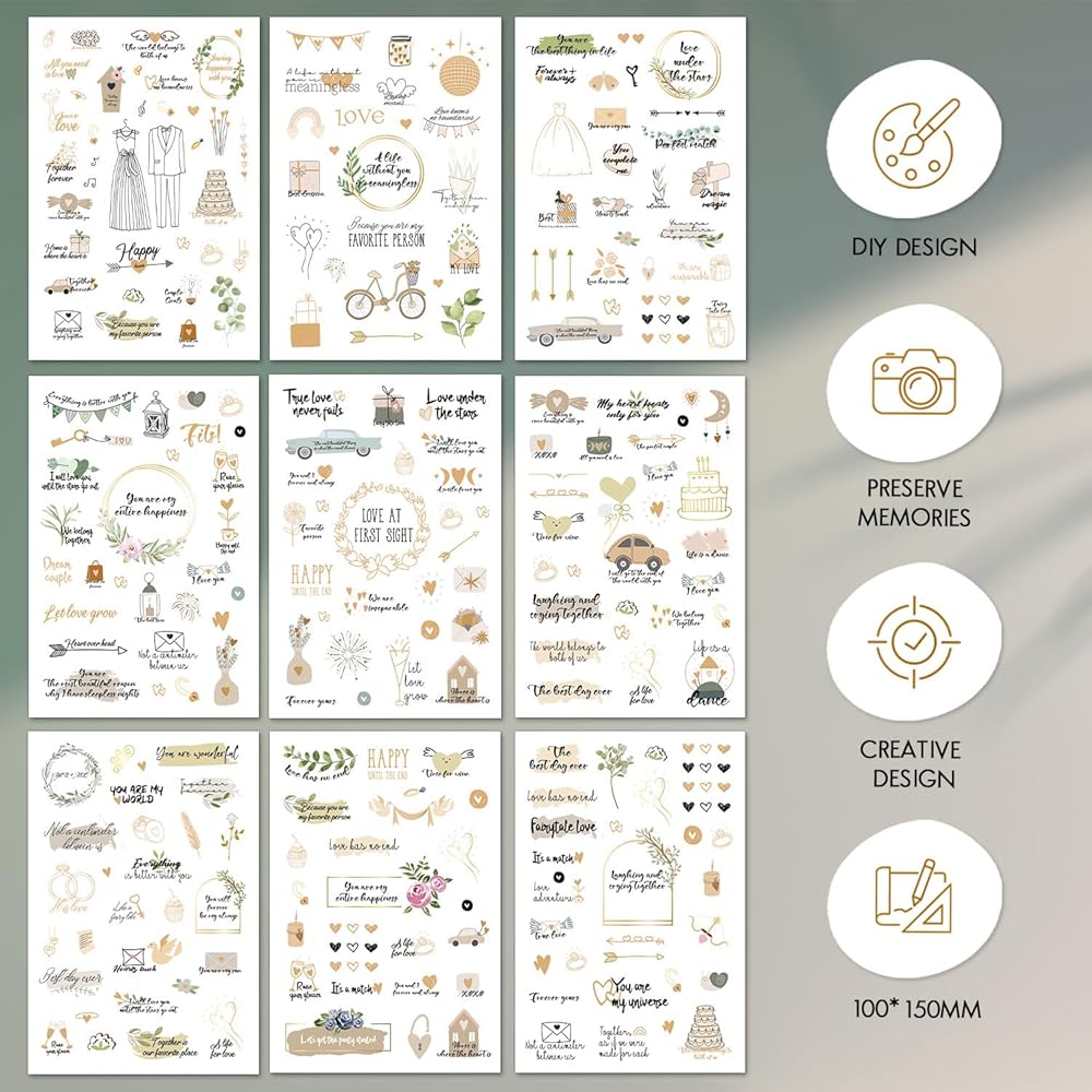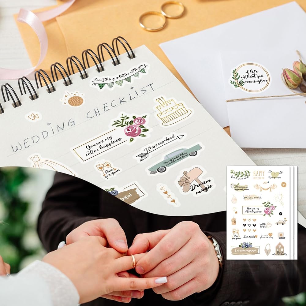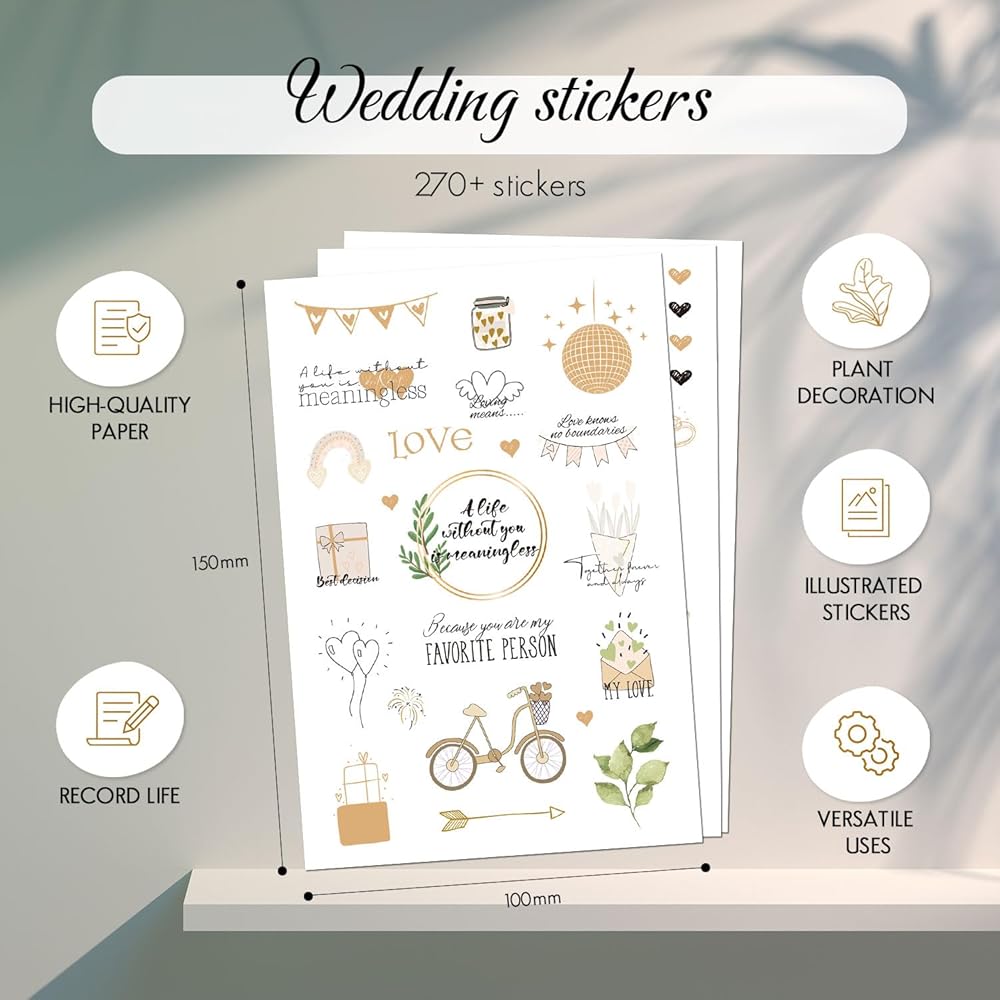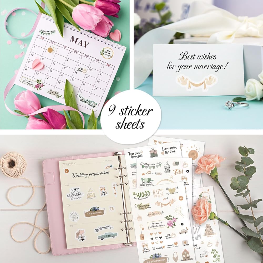 Wedding Stickers for Scrapbook | 9 Sheets Wedding Scrapbook Stickers | 200+ Waterproof Sticker | Bridal Shower Engagement Marriage Anniversary for Engagement Planning Embellishments