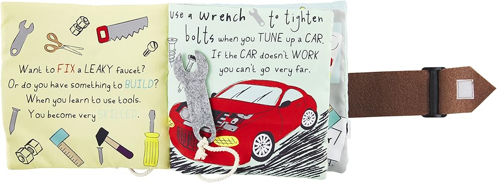 - Illustrated sof book about how to use tools includes three wood and two felt tools. Ages 3+.