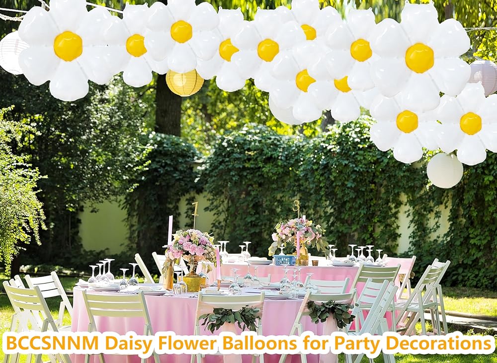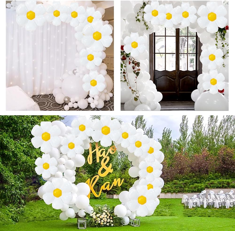 【Exquisite Design】:These boho daisy balloons feature charming white flower designs, creating a unique and elegant atmosphere. Each flower balloon appears lifelike, as if blooming on the light and airy balloons. This distinctive design will add an artistic touch to your party or wedding, elevating the ambiance with its beauty