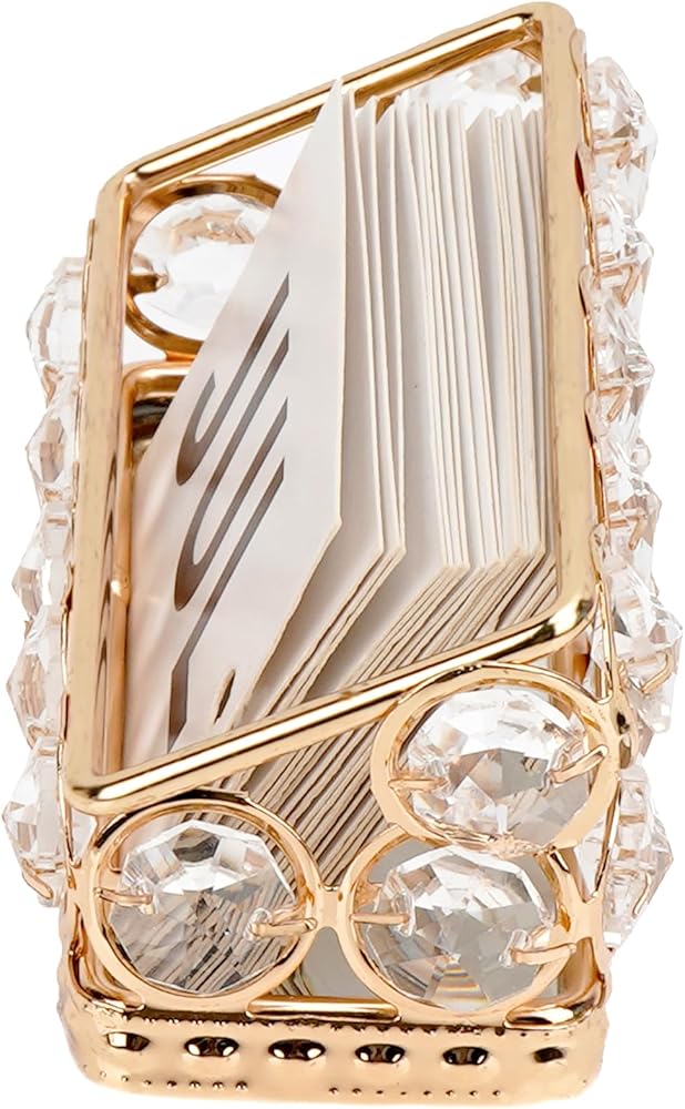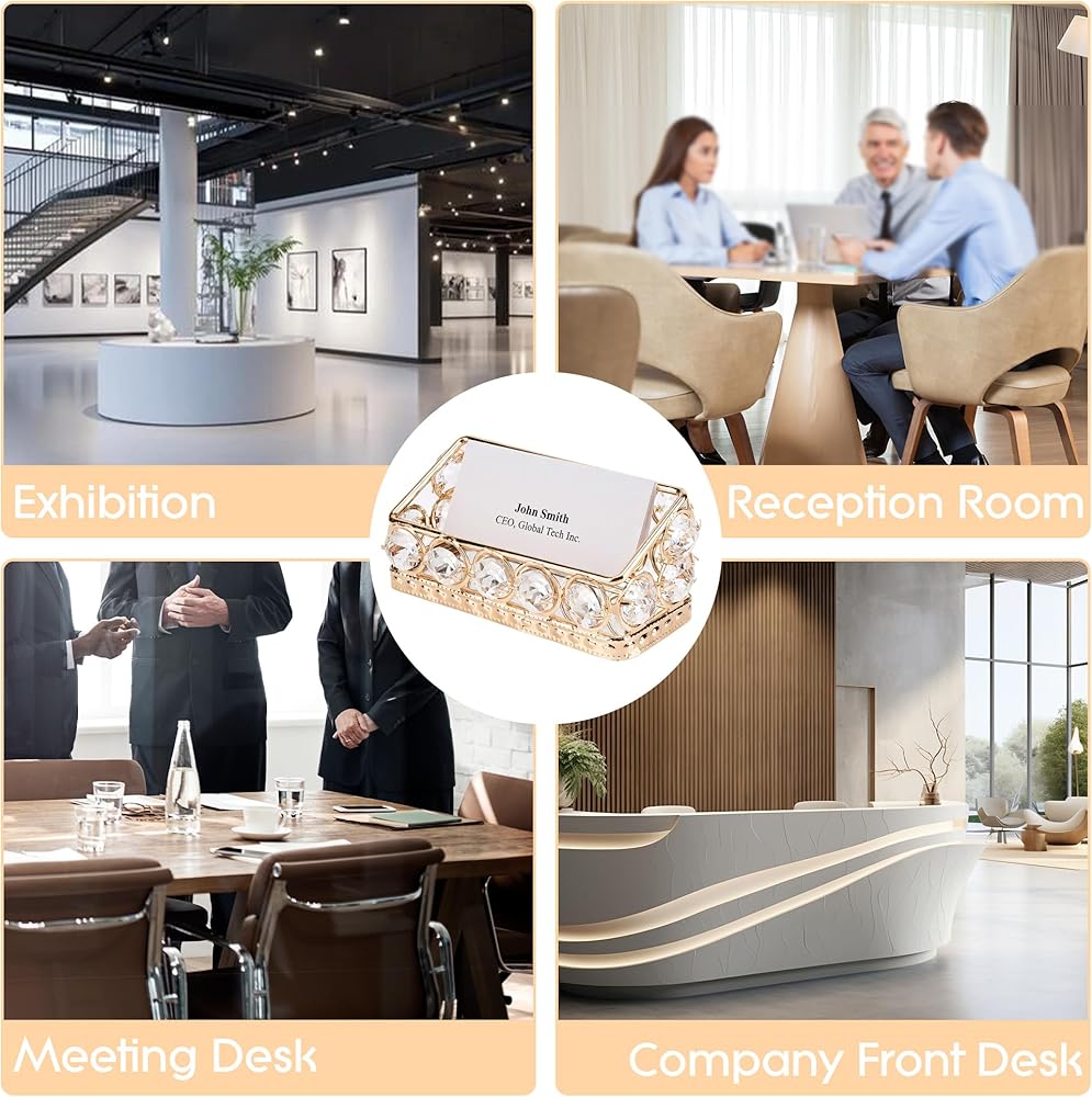 Elegant Design: Features a sleek silver frame adorned with sparkling crystal accents, creating a luxurious display for your business cards
