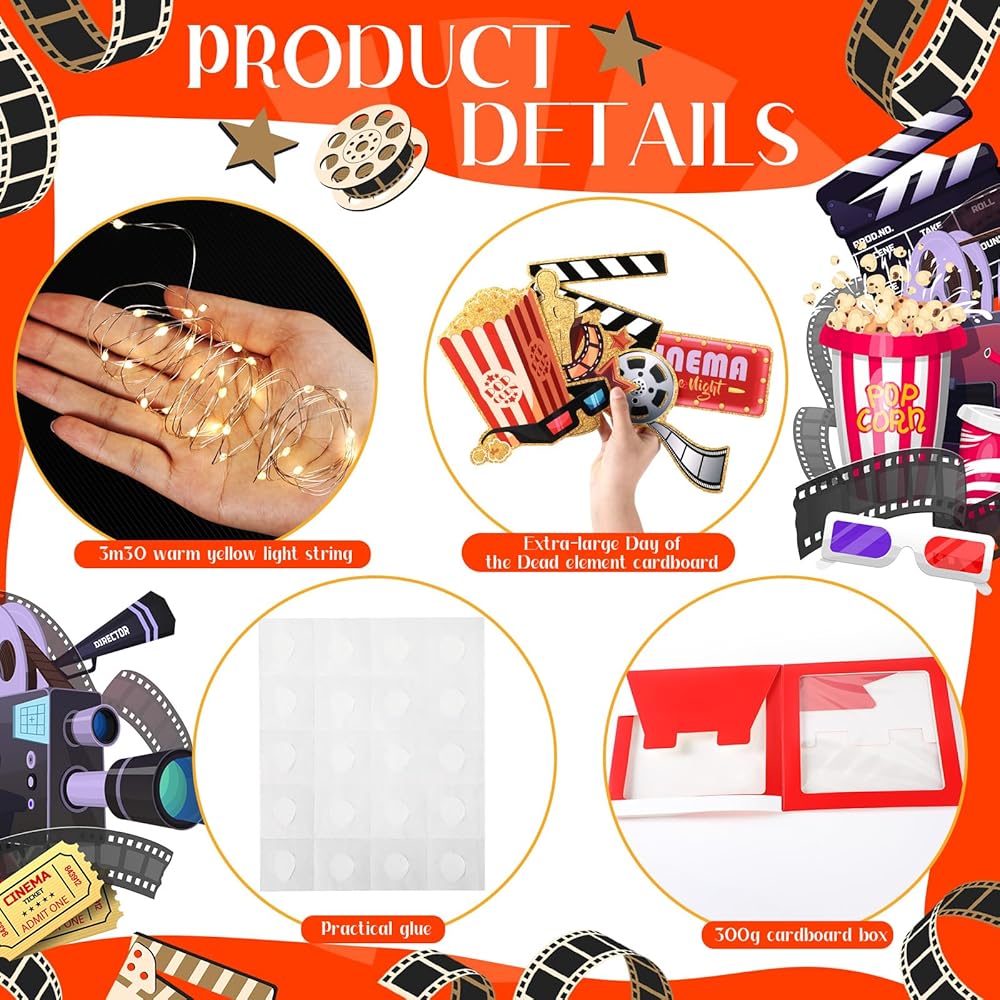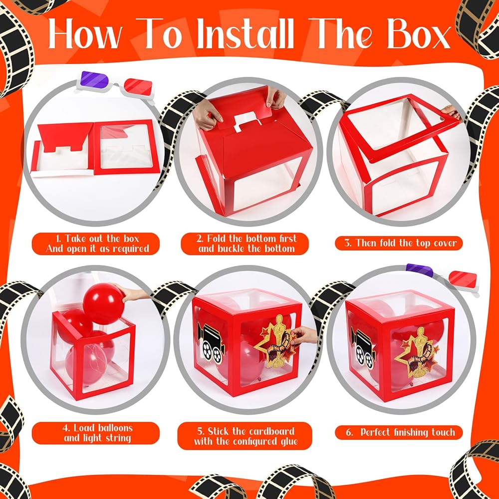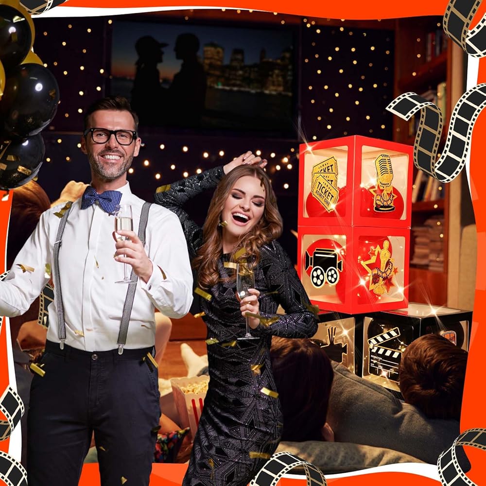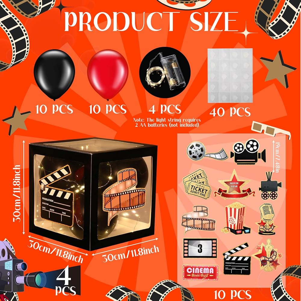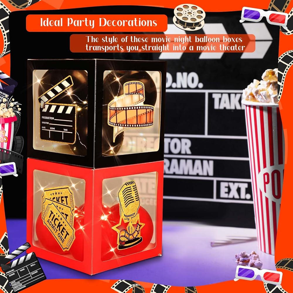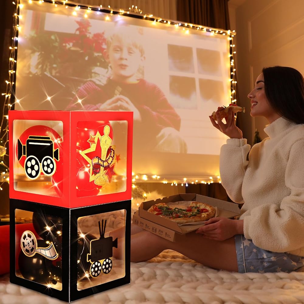 The Movie Night Boxes and Cutouts come in the proper sizes (11.8 x 11.8 inches/ 30 x 30 cm for the boxes, 7.5 x 7.5 inches/ 19 x 19 cm for the cutouts). Their sizes allow ample space for all movie night decorations, while also adding a glamorous touch to your movie night party decorations.