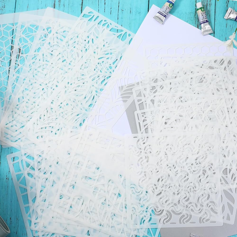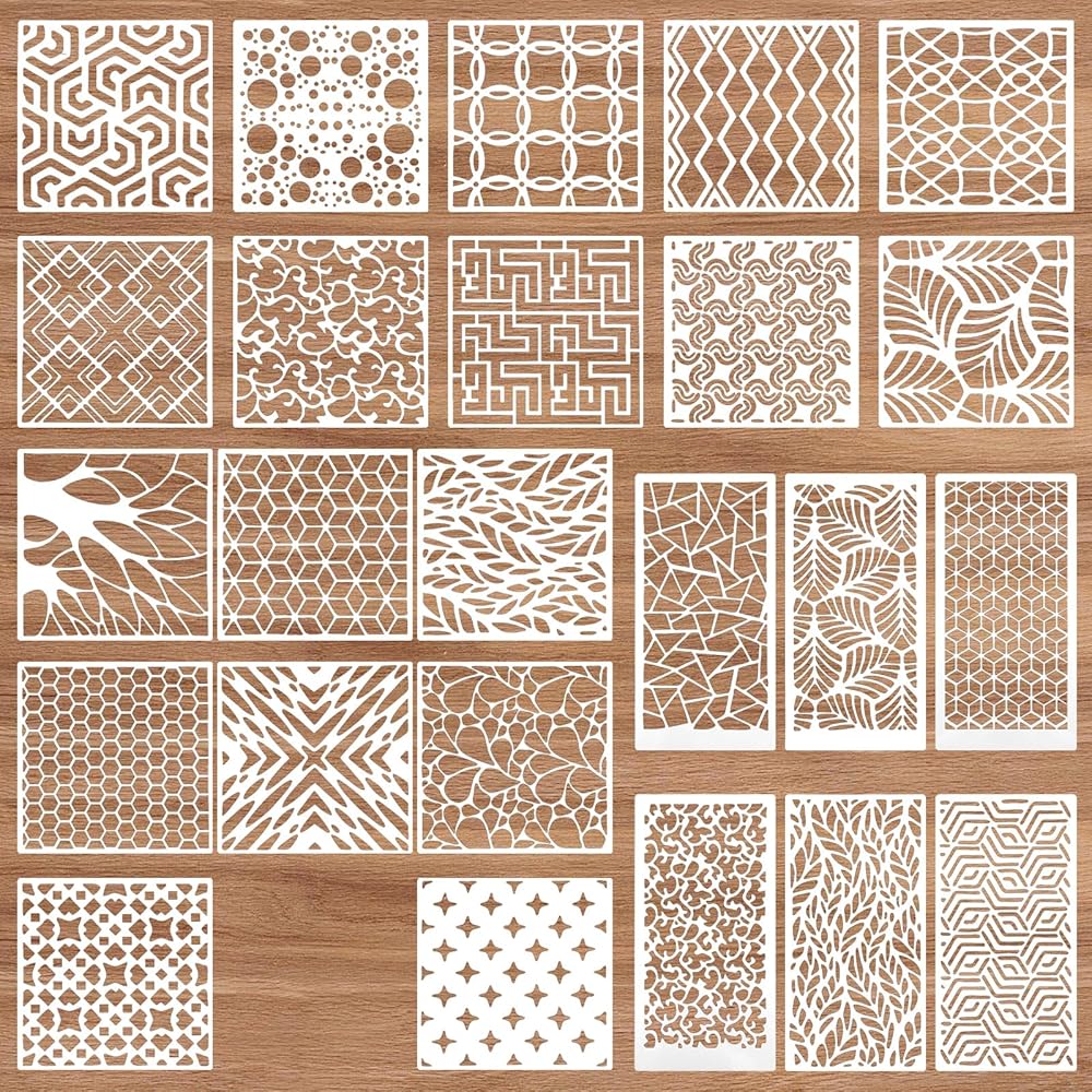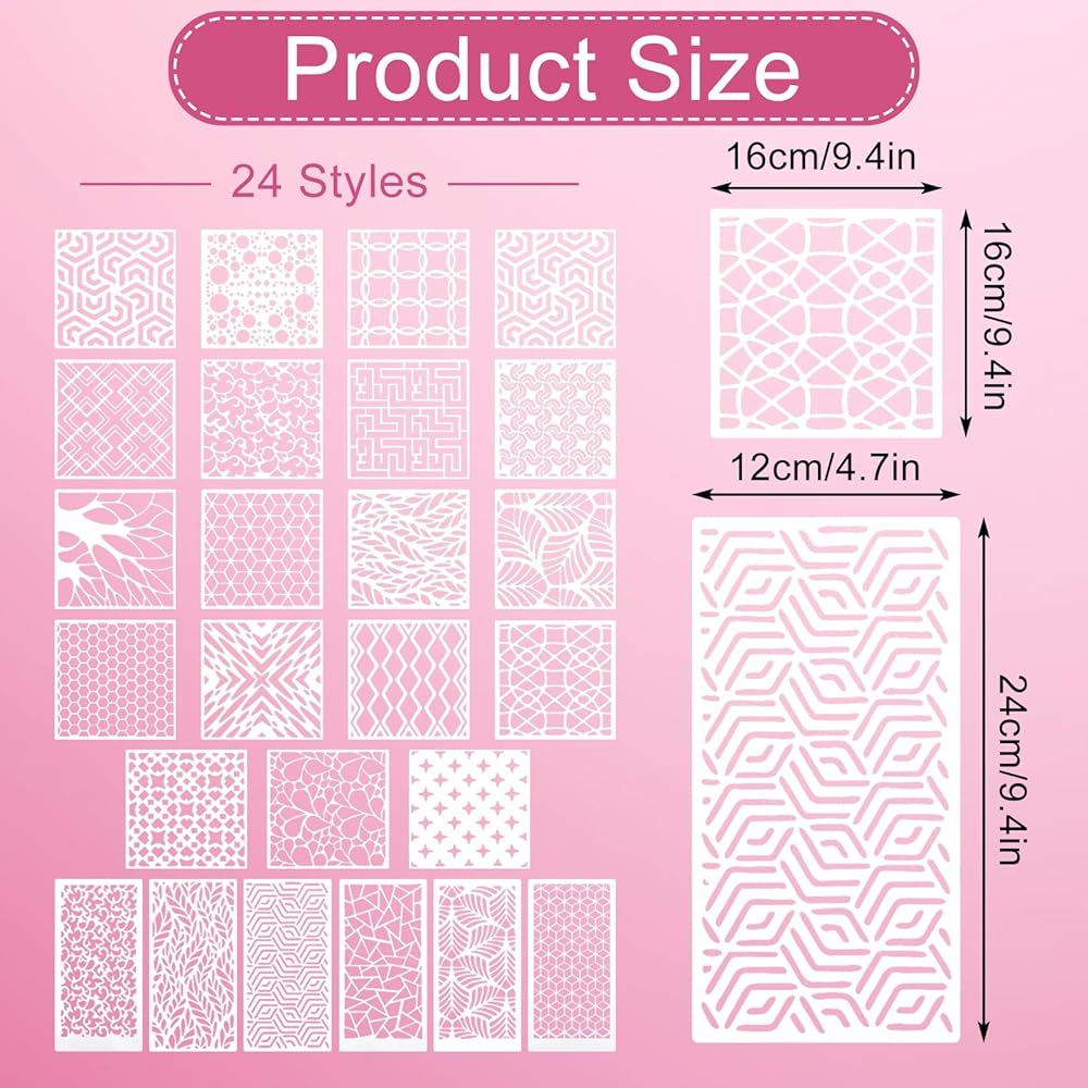 【Package Content]】: You will get 24 layered stencils for reusable with different patterns, consisting of 18 squares and 6 rectangles. You can freely combine various exquisite artistic patterns, geometric shapes, leaves, patterns, various textures, etc. to create your works of art