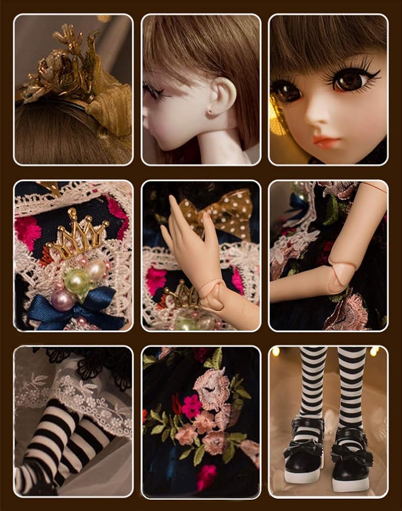 💖【Features】She is around 60cm(23.6 inches) height, and she wears gorgeous clothes we design for her. Quality of clothes meets human clothes criteria. Compared with the same kind of dolls, she has rich facial details. Additionally, she has 19 developed rotatable joints and can make variant lifelike pose.