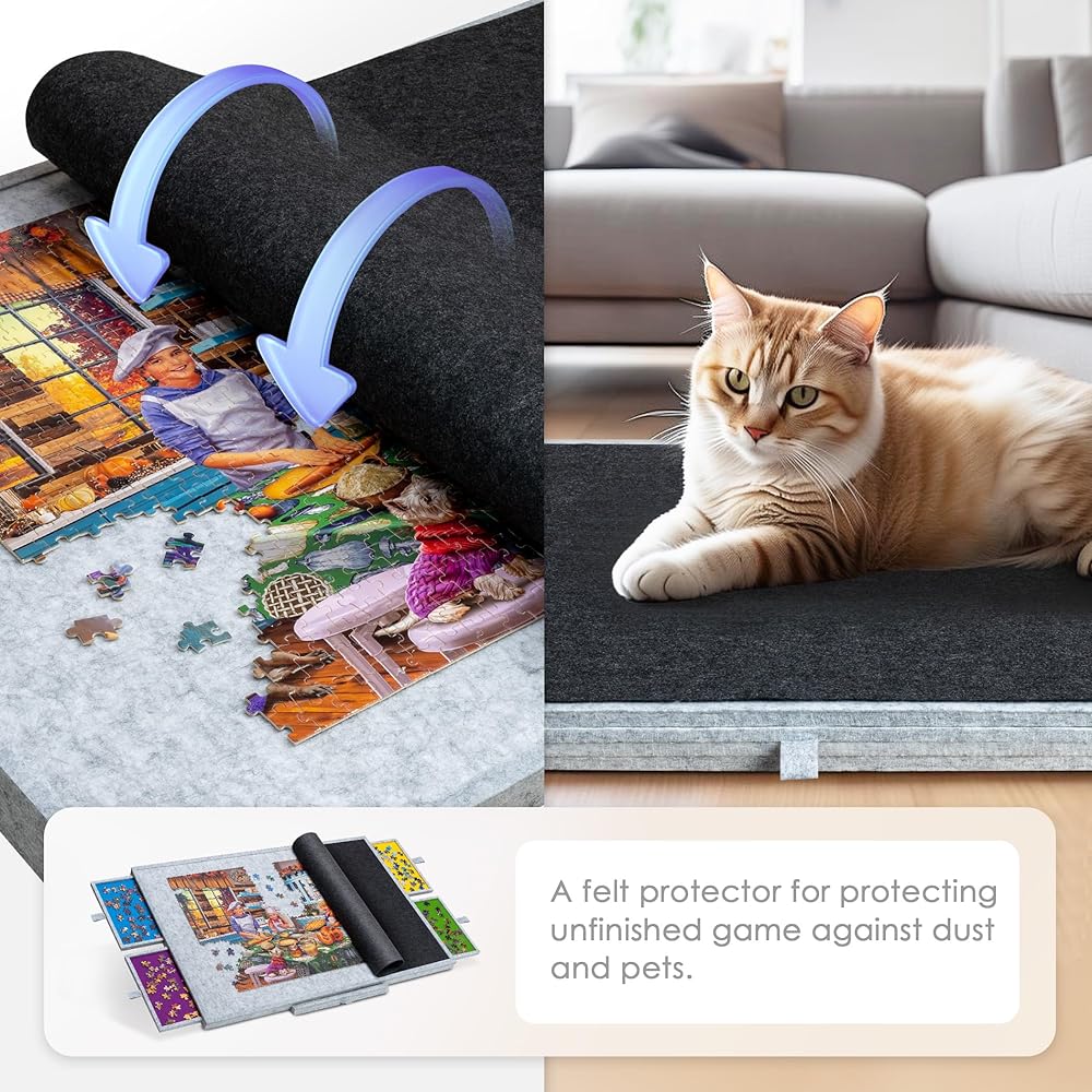 Felt Sheet Cover - Enclosed with a felt sheet protector to secure your unfinished puzzle game against dust and stop naughty pets from messing with it while you are taking a rest.
