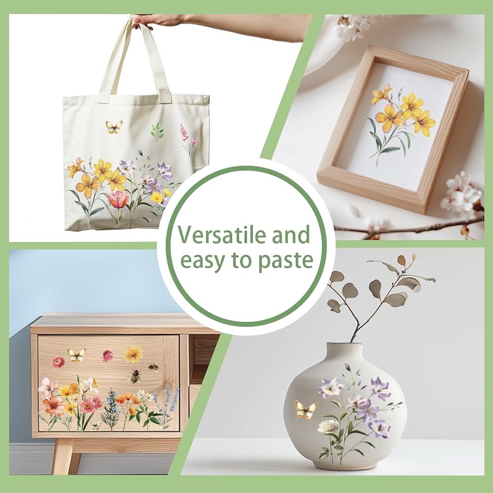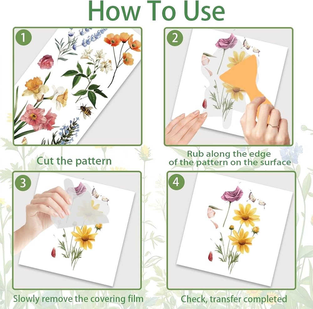 PACKAGE INCLUDE: Includes 3 sheets of rub on transfer for crafts and 1 cutting board, the decals consist of a variety of flowers, vintage style to meet your various diy decals needs.