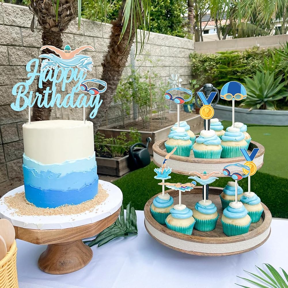 Swimming Theme: There are “Happy Birthday” letters and swim patterns on the cake topper and cupcake toppers, which are very noticeable to announce that today is a special day for your birthday and invite everyone to join the party.