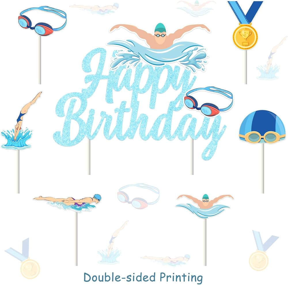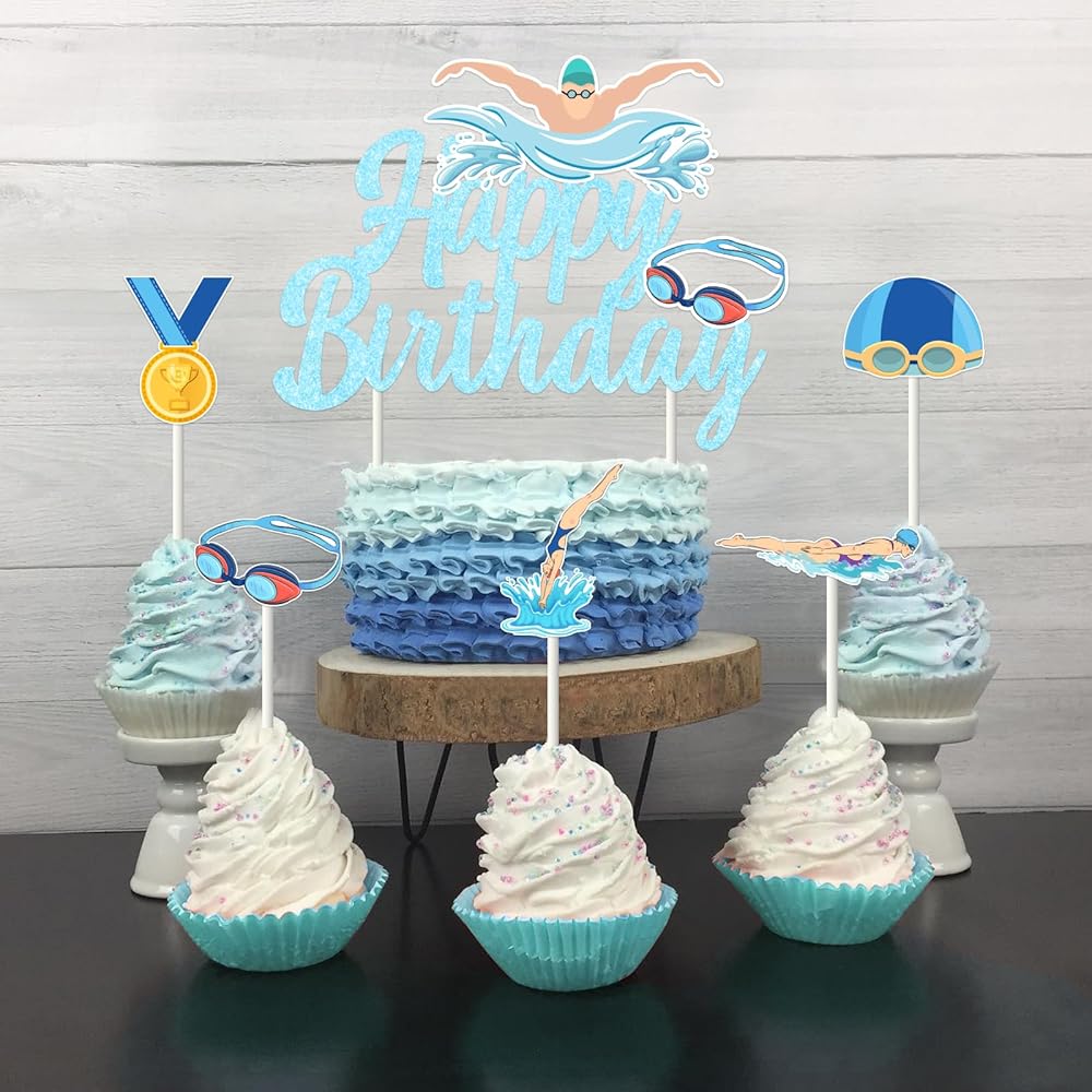Premium Quality: Our swim theme birthday cake topper and cupcake toppers are made of cardstock materials, which is durable and not easy to tear, and you can freely use these toppers to make the swimming birthday cake more eye-catching.