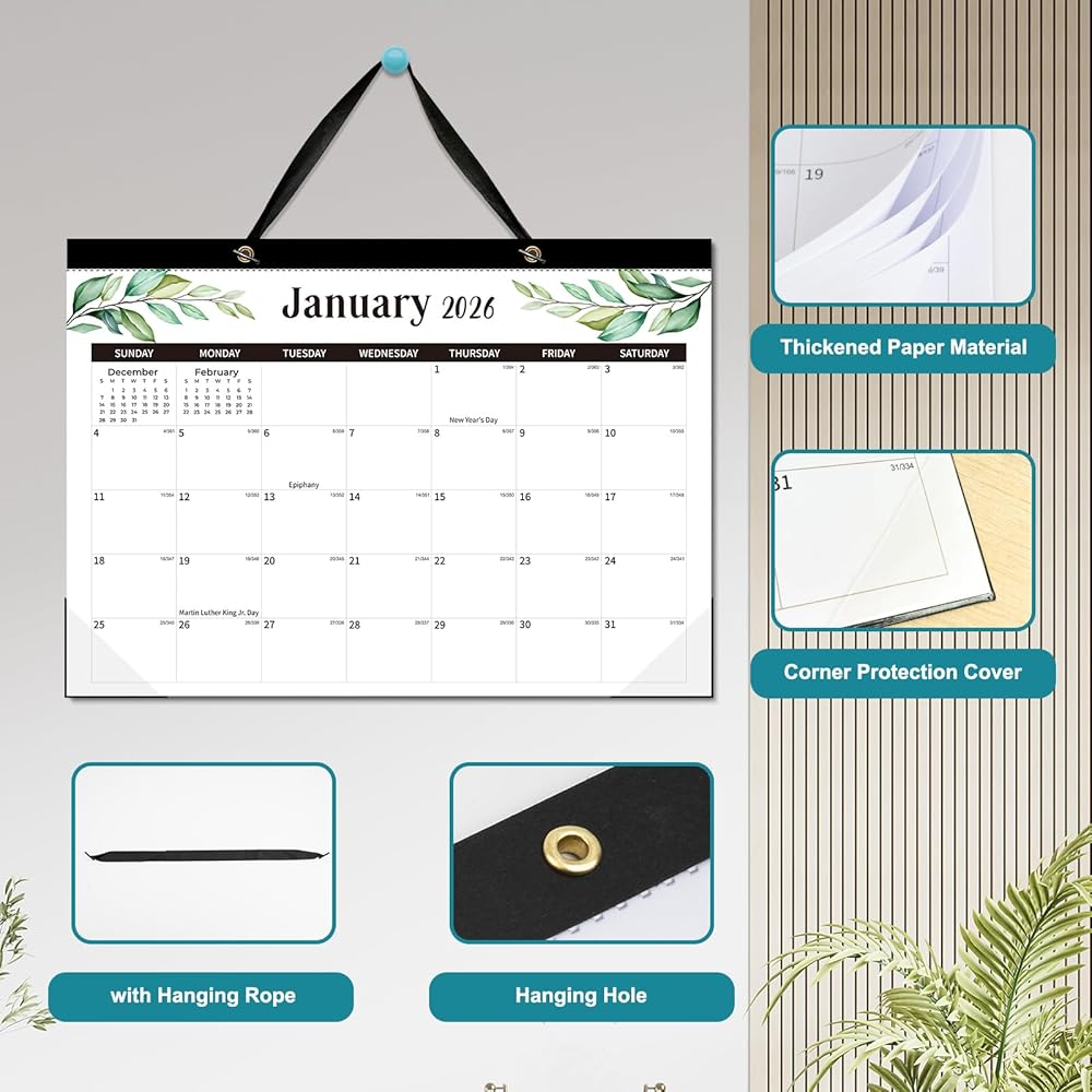 【Dual-function Design】 This desk calendar is equipped with two hanging holes, and our package also comes with a black hanging rope. You can easily convert the desk calendar into a wall calendar according to different usage needs. Whether it is placed on the desktop or hung on the wall, it can add highlights to your space.
