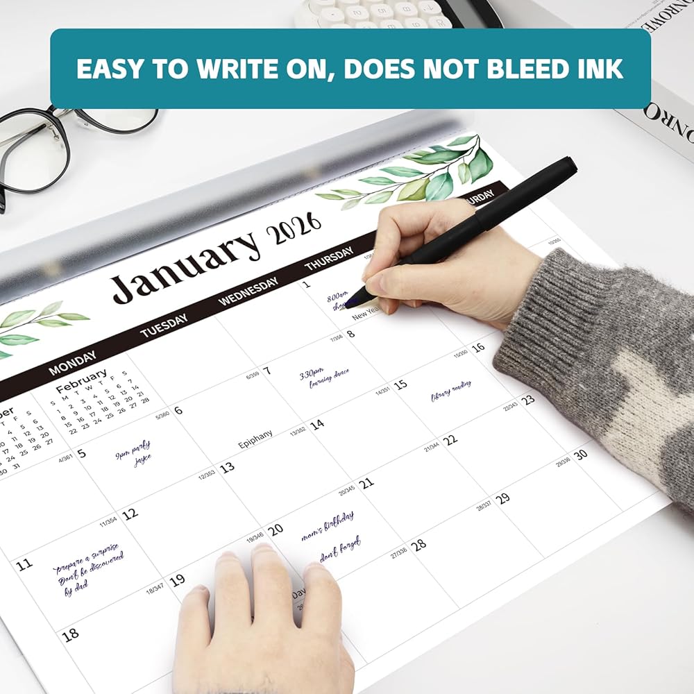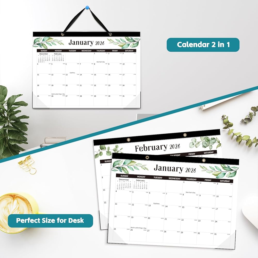 Desk Calendar 2026-2027, 18 Monthly Desk/Wall Calendar, Jan 2026 - Jun 2027, Desk Top Calendar 17" x 12" Large Desk Calendar with Transparent cover, Cutting Lines, Corner Protectors, for home, office