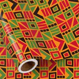 RUSPEPA Black History Month Wrapping Paper Roll, Mini Roll, 17 Inches x 16.4 Feet, Black, Green Red Yellow Geometry Pattern Design Gift Wrap Paper, Bright Colors for African BHM Festival Holiday Party