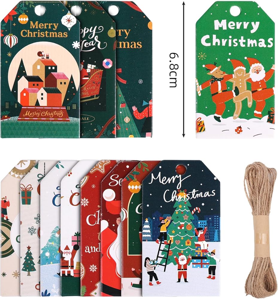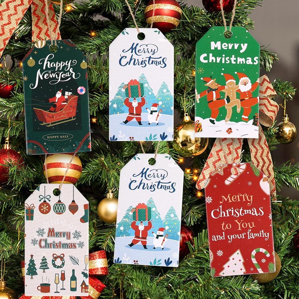- 96PCS Christmas gift tags in 12 different patterns (8PCS per pattern)