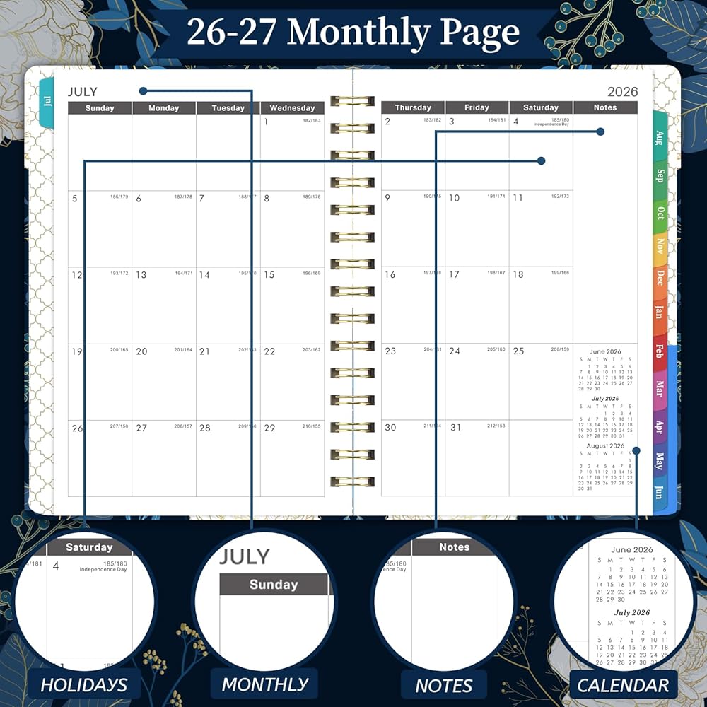 📝FEATURES - 6.3" x 8.5" Planning Pages | Reference Information | Yearly Overview | Holidays | 2024-2025 appointment book | Strong Twin - Wire Binding | Julian Date | Premium Paper | Elegant Design | Monthly Tabs.