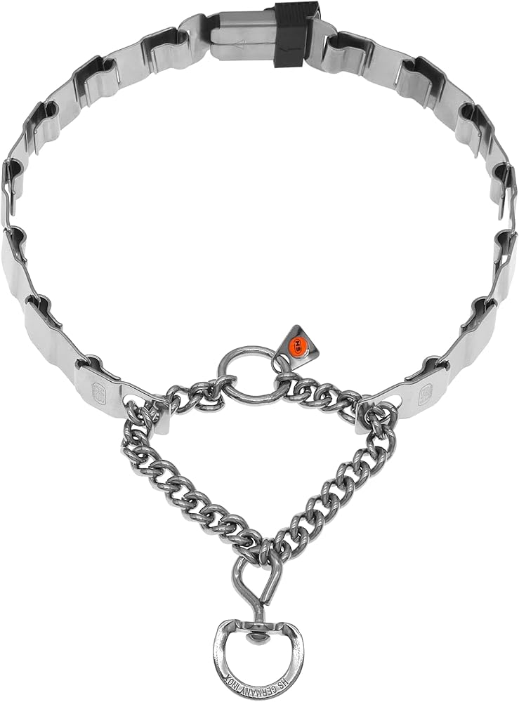 Unlike conventional prong collars, uniquely designed Neck Tech Fun collar features flat links offering comfortable wear and stylish look. Clasp the ClicLock buckle to ensure safety of the enclosure and to prevent unintentional opening. The plastic jacket is designed to slide out completely from an open buckle. If the jacket was lost, the function of the buckle mechanism will not be affected.