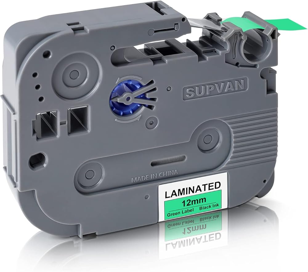 SUPVAN LP5120M Continous Label Tape Adapted Label Print Paper Size 0.47in x 13.12ft Thermal Laminated Waterproof Self-Adhesive Multipurpose Labeling Tape Replacement,Black on Green