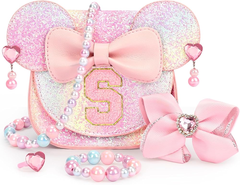 Cute Shape: Patched with a letter,This little girl purse would be a personalized birthday gifts for 2 year old girls or under. Kids would love its mini mouse ears and bow