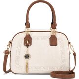 - Tassel pendant, stylish pattern and top handles with Double S buckle details give this crossbody purse an elegant look.