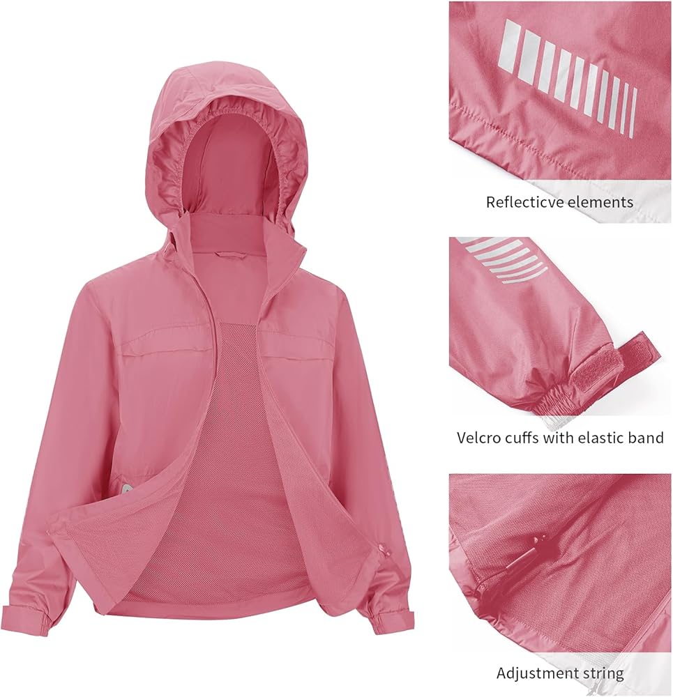 【Safety Reflective Strips】This rain gear for boys and girls is designed with large high-visibility reflective strips on the sleeves, around waterproof zipper pockets on both sides of jacket and reflective strips on the bottom of the back, which will glow when fishing, running, camping in rainy days or at night to ensure safety