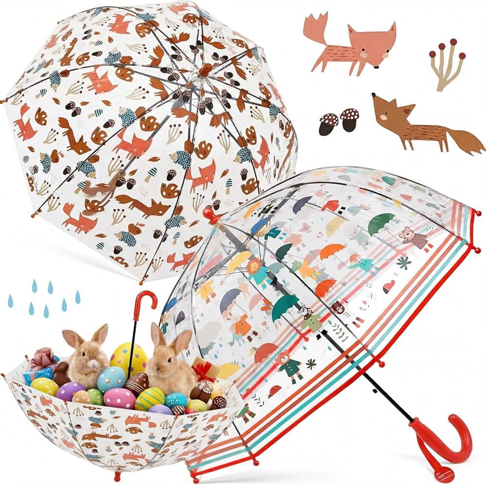 Clear Canopy Visibility: the package includes 2 children's transparent bubble umbrellas in different styles, the quantity and styles are enough for you to use and replace; The transparent design improves the visibility and safety of the umbrella, allowing children to see where they are going and pay attention to their surroundings, especially in crowded or busy areas