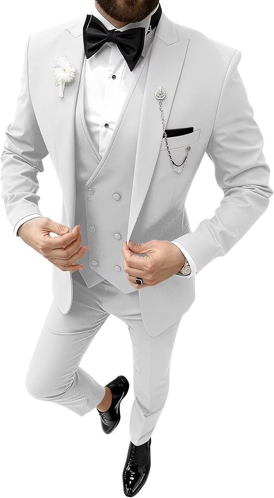【Material】Mens Tuxedo Suit Set crafted from durable polyester and viscose material, this men tuxedo suits ensures both comfort and longevity,also are comfortable and stretchy to wear. You can confidently wear this men's 3 piece suits throughout the event without worrying about any discomfort or wear and tear.