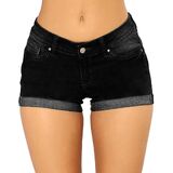 Mid -rise distressed denim shorts with a cuffed hem and a "push up" fit for a curvier look. Traditional 5 pockets and zip fly closure construction.