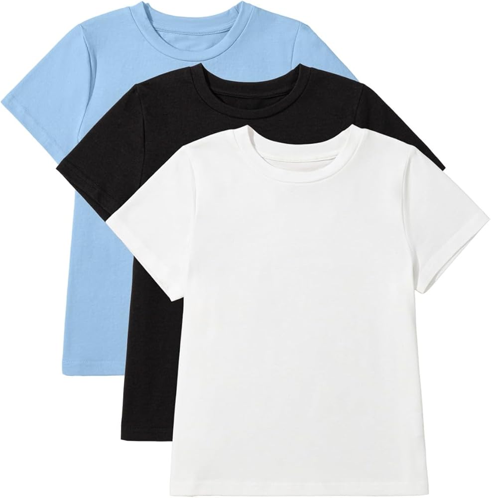 blibean 3 4 Pack Summer Girls Shirts Cotton Soft Kids Short Sleeve Clothes Size 6-15 Year
