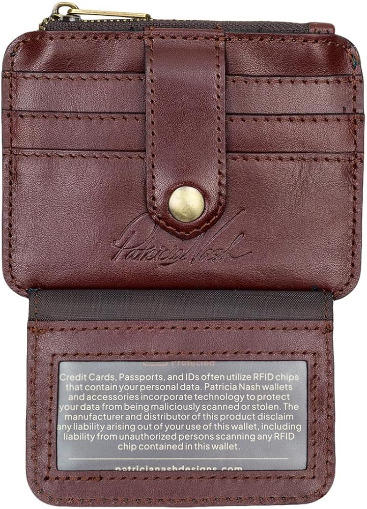 Upgrade your everyday carrying timeless elegance. The Patricia Nash Cassis ID Case is a stylish companion crafted from premium leather with a rich polyester lining. Featuring three credit card slots, an ID window, and a deep embossed logo inside, thi
