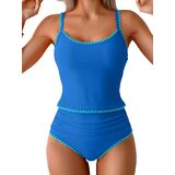 Feature: Two piece tankini swimsuits for women featured with shell stitched, cutout and adjustable tie knot back. The innovative design style makes you look more stylish and flattering