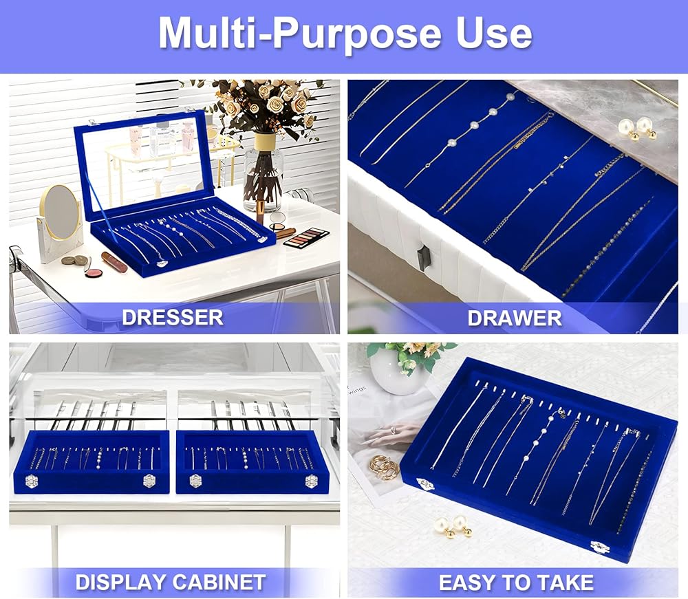 💎PREMIUM VELVET NECKLACE HOLDER: This Necklace display organizer made of high quality velvet and composite board. The necklace tray box for women is soft to the touch to keep the interior of the jewelry organizer and jewelry free from scratches and damage