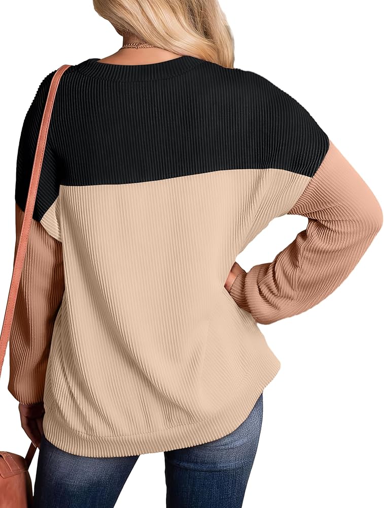 Features: Featuring a bold Color Block design-incorporating fall fashion elements.Hips Length,the arms are long enough,a loose fit,classic crew neck.It can as a lightweight top to match with any outfit.