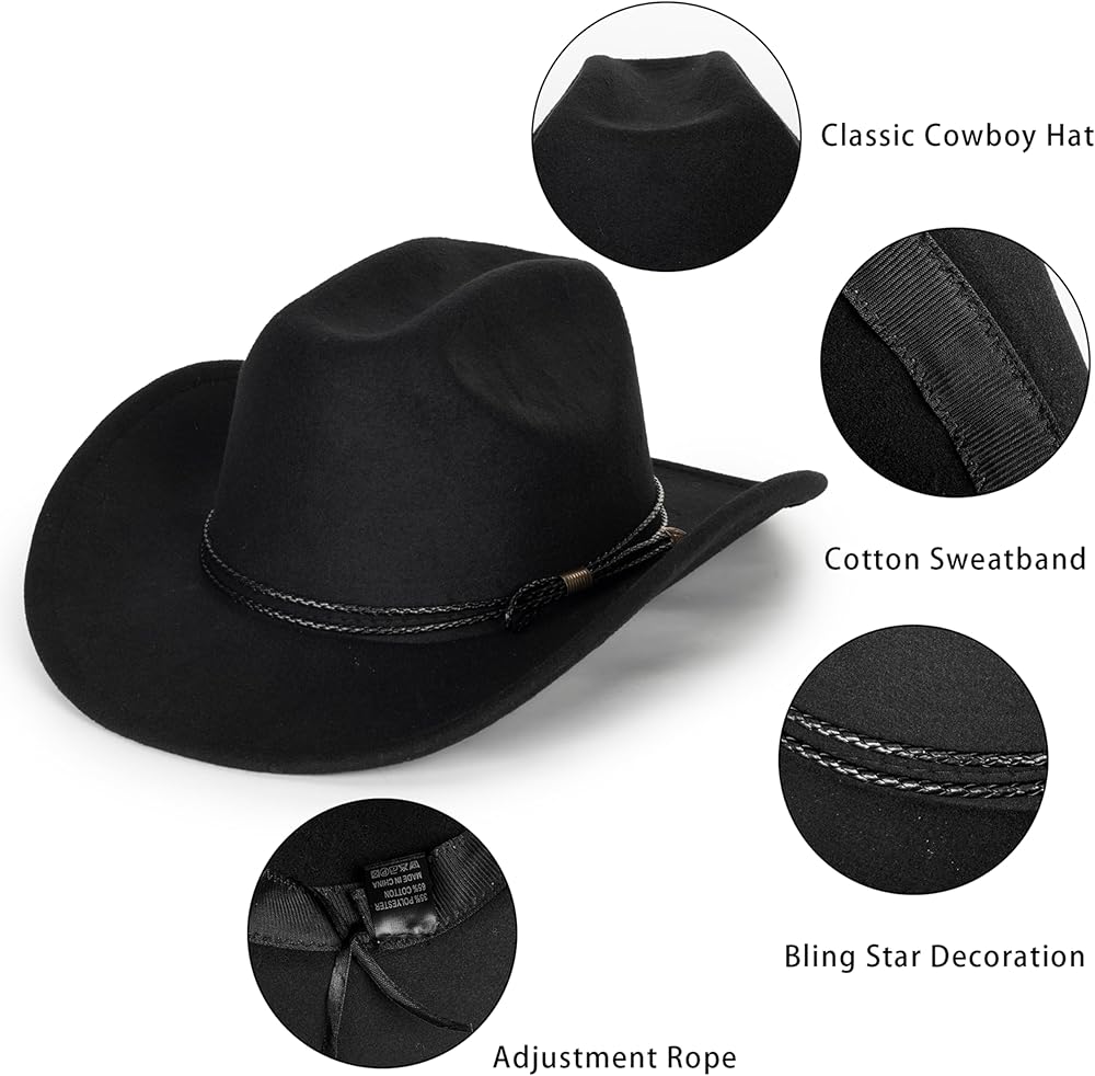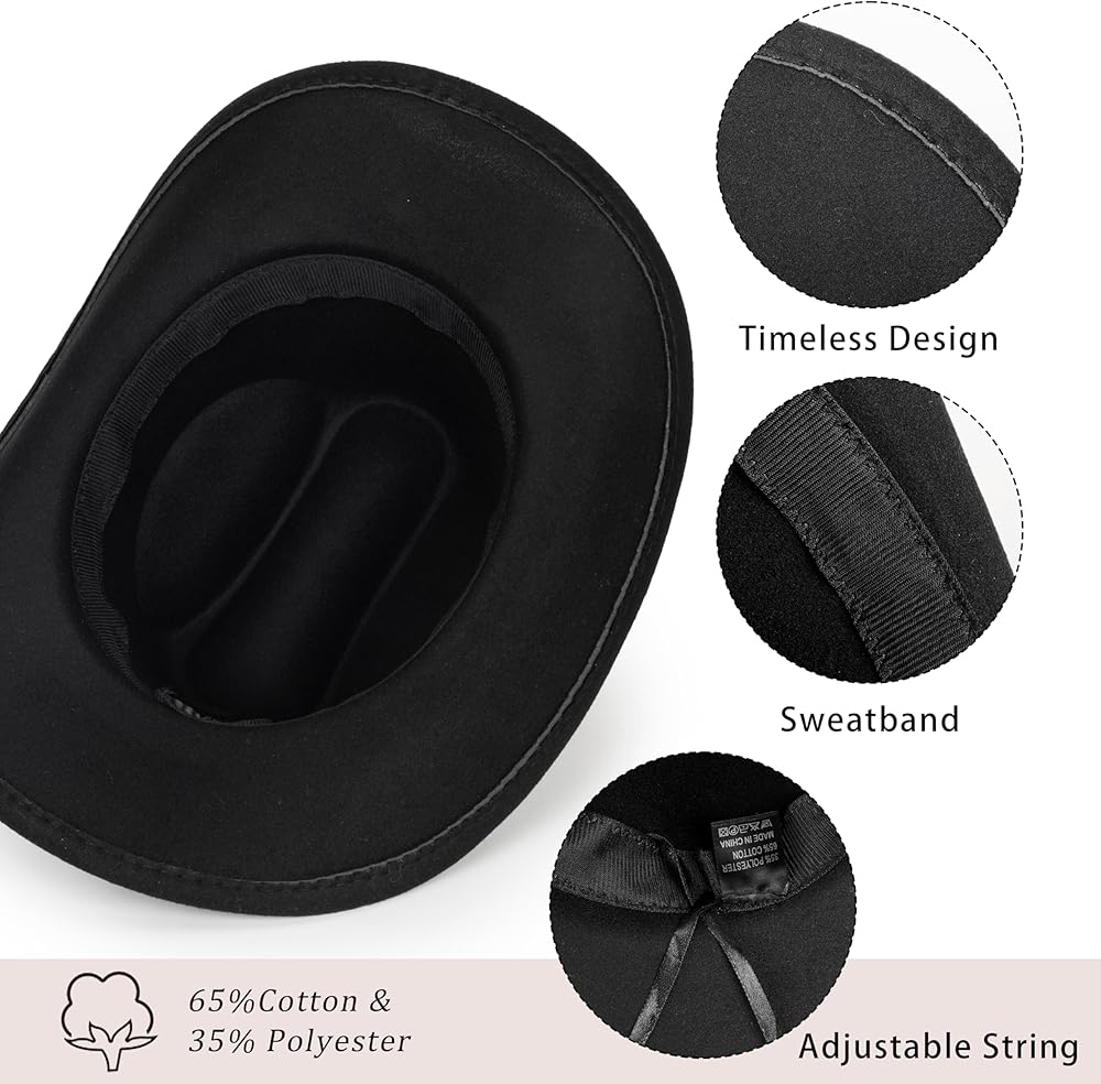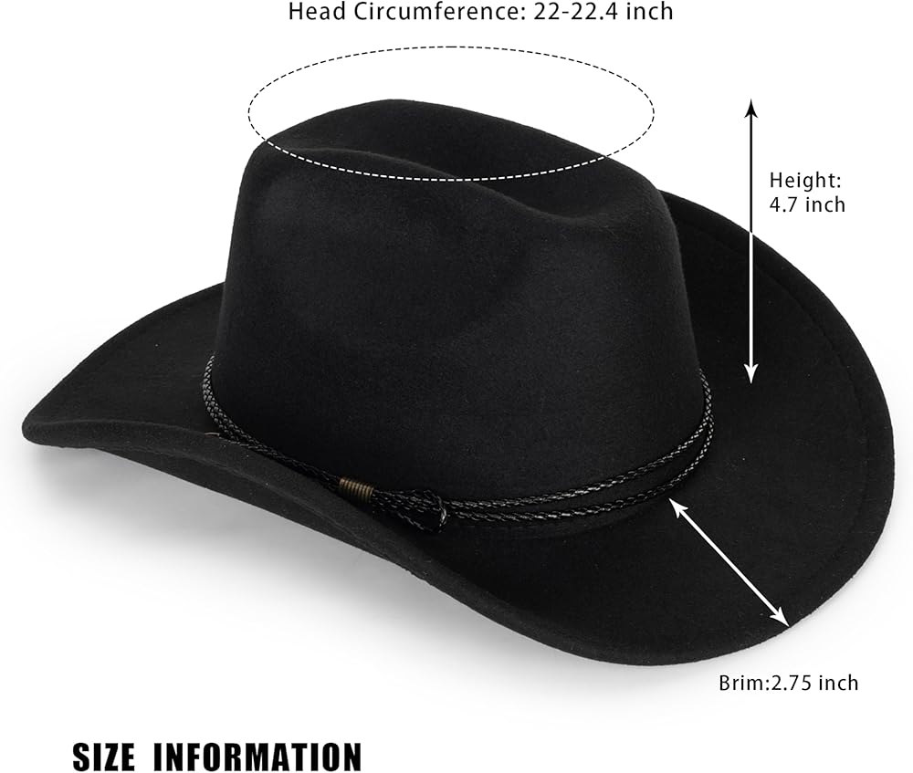 Womens Cowboy Hats Size: Hat Circumference: 22"-22.8", Brim Width: 2.75", Hat height: 4.3". Great for Unisex Women Men.