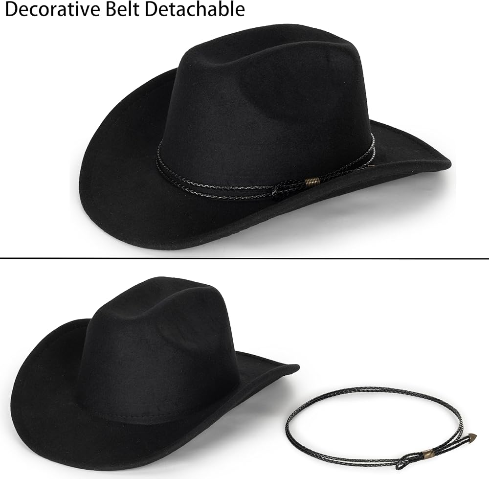 Western Cowboy Hat Design: Classic western cowboy hat style, women men cowboy cowgirl hat, rolled brim, belt buckle decoration, elegant and stylish, great accessory for unisex.