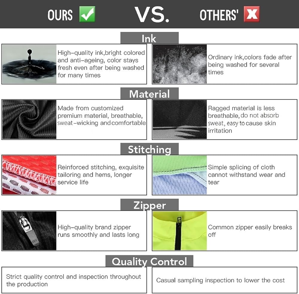 【Smooth Zipper】The jersey has a high-quality SBS smooth zipper and a top stopper to avoid chafing on your chin and neck, not easy to damage. Highly elastic shorts for free leg stretching.