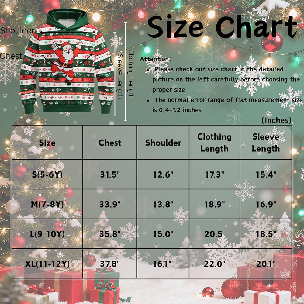 Kids Novelty Christmas Sweater Hoodie,Boys/Girls Ugly Christmas Sweatshirt, Chrismas costume