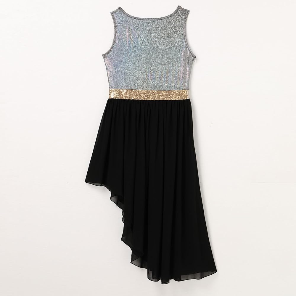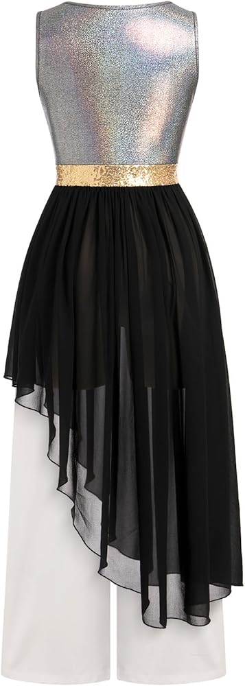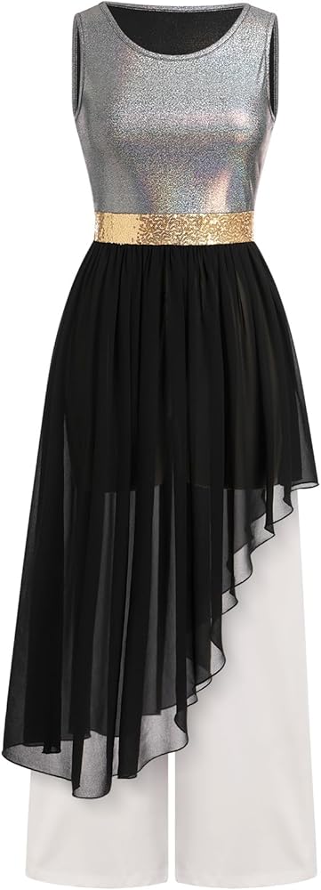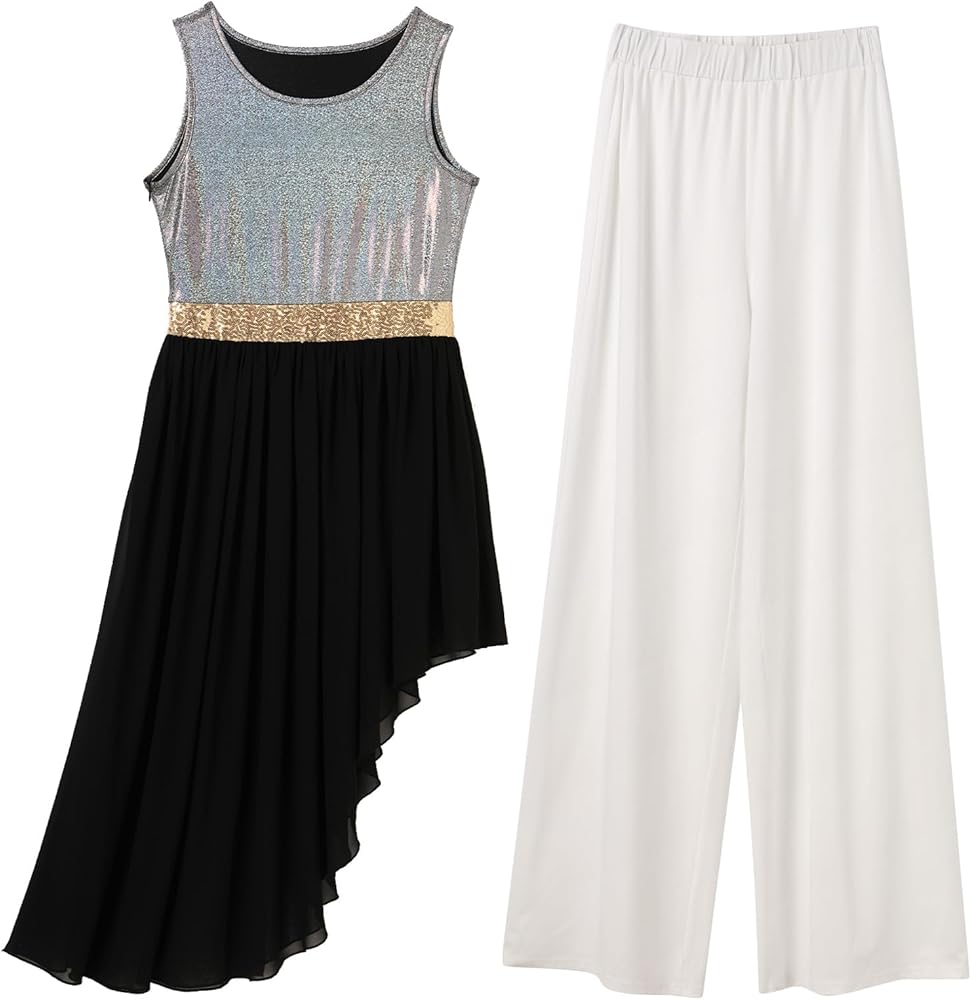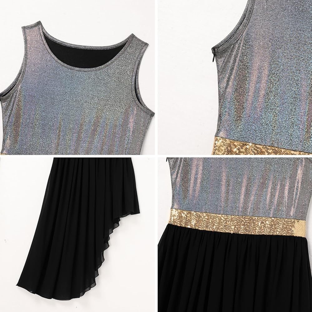 PRAISE DANCE DRESS: In a gorgeous metallic fabric, we bring you this stunning worship dance outfits, you'll feel like you're floating in this danza cristiana vestuario that features a shiny tank top asymmetric chiffon tunic.