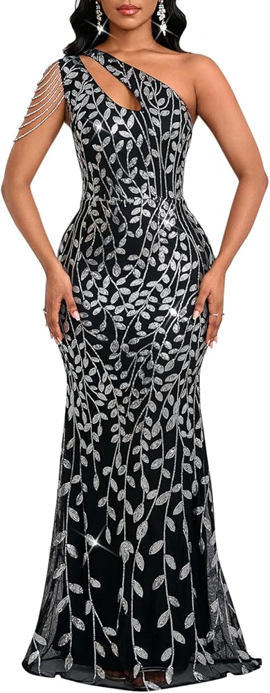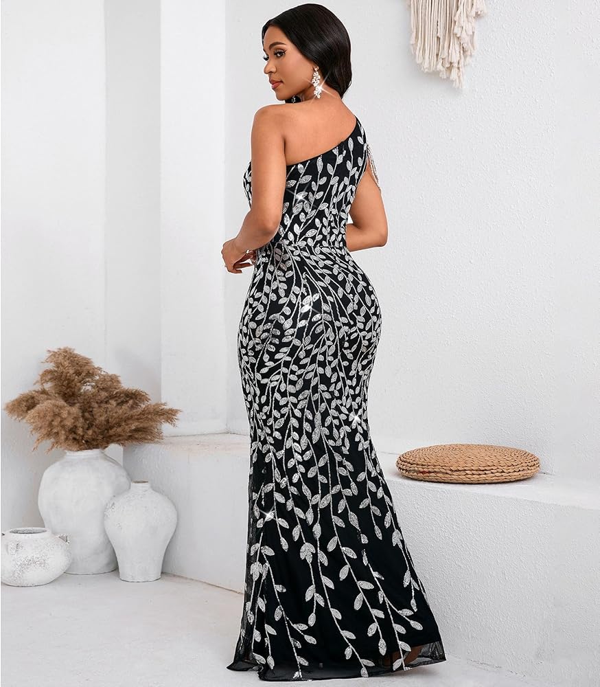 Design: Sequin for women designed with tassels on shoulder and sheer mesh on your chest makes you more sexy and attractive. One Shoulder Off shoulder, Ruffles Selvedge, Mermaid design, Figure-Fitting Shape, Bodycon Fit Cut, make you look sexy and elegance. Body-flattering with sexy design, Cocktail Gown Dress, make you more beautiful, fashion, sexy and elegant.