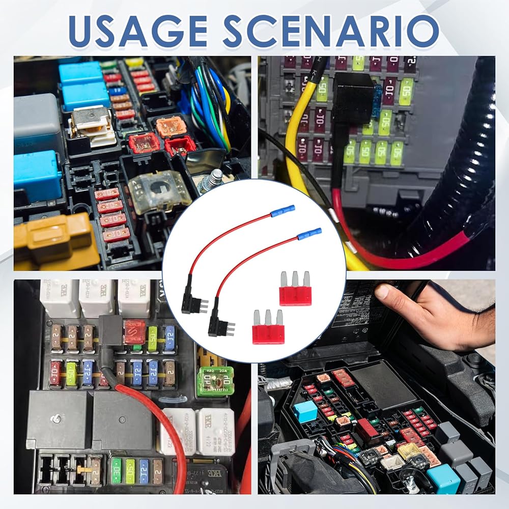 UNIVERSAL COMPATIBILITY: Our fuse tap adapters are designed to fit most vehicles with Micro3 ATL blade-style fuses. Made from high-quality materials, these adapters offer excellent electrical conductivity and heat resistance. Each tap provides two fuse holders - one to protect the existing circuit and another for your new accessory, ensuring safe and reliable power distribution.