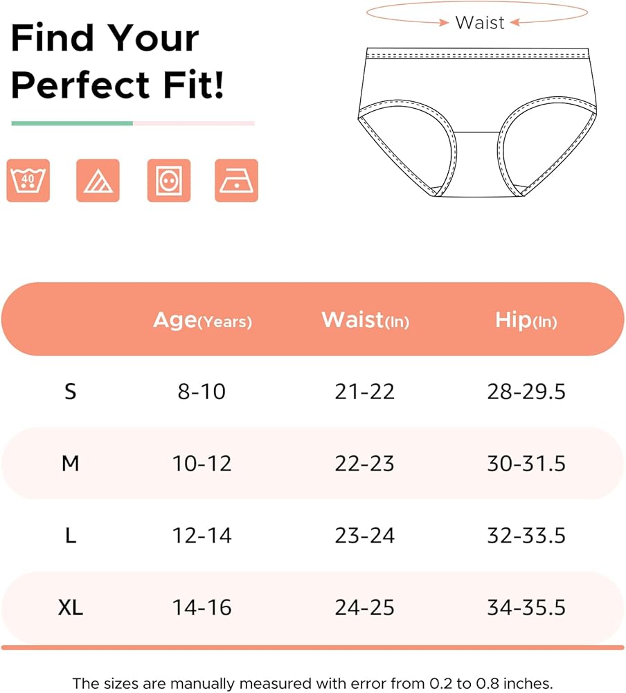 Correct fit: The teen panties have a full coverage and snug fit, which can also help keep the underwear in place to avoid the need for frequent adjustments. Soft waistband and stretchy leg openings are friendly to girls skins. The comfy cut is suitable as everyday underwear. Tag-free design provides with no-scratch comfort