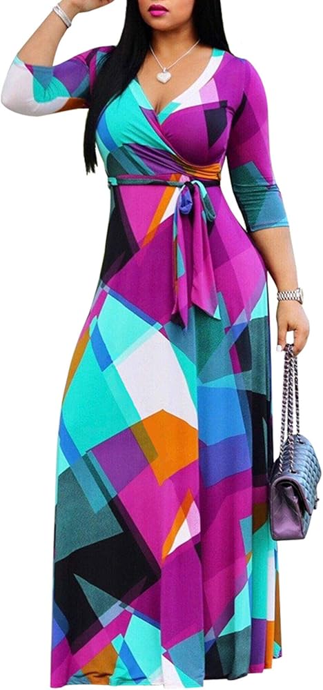 【Various Styles】The unique print on the maxi sexy dress makes you look more elegant and sexy. The colors in this dress screamed spring/summer. Colorful print is made of natural plant dyestuff, which shows gorgeous look and is more and more popular.