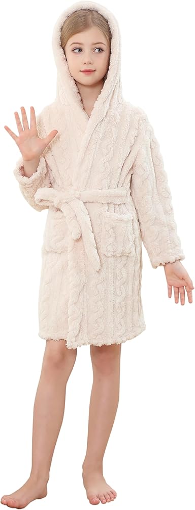 【Design】Unique and Smart Design, Waist Tie is Sewn into the Robe, So Your Little Kids Won't Lose the Robe Belt.Hooded Design Make Sure Body Warm After Bathing or Swimming and Prevent Colds.Two Pockets are Convenient for Children to Store Their Toys, Snacks and Other Small Parts.