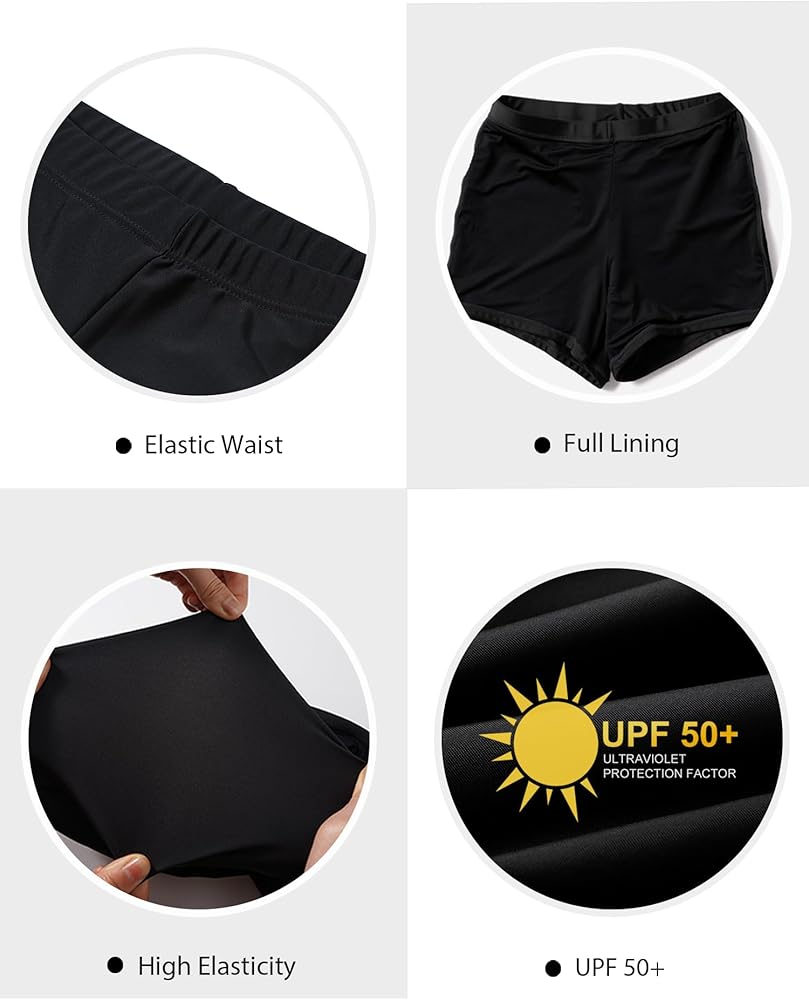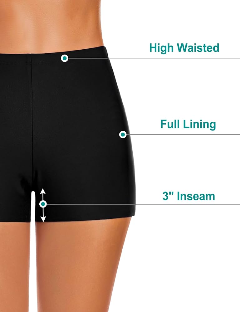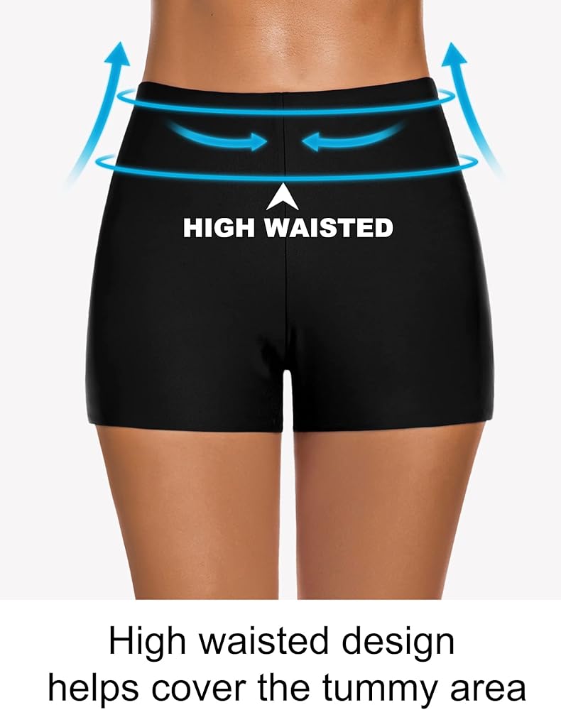 High Waist & Elastic Waistband: High waist helps cover tummy areas. Elastic Waistband can suitable for a variety of body types, and will not slide down when wet