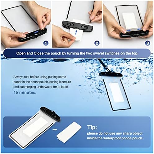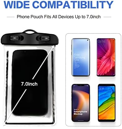 【Great Compatibility】 Our mobile phone waterproof dry bags are compatible with all models, such as iPhone 13 12 11 Pro Max, 13 12 11 Mini, 6/6S/7/8 Plus, X/XS Max/XR, Galaxy S9 S10, Note 8/9/10/10+, OnePlus 8/9 Pro/8T/Nord N100, etc.