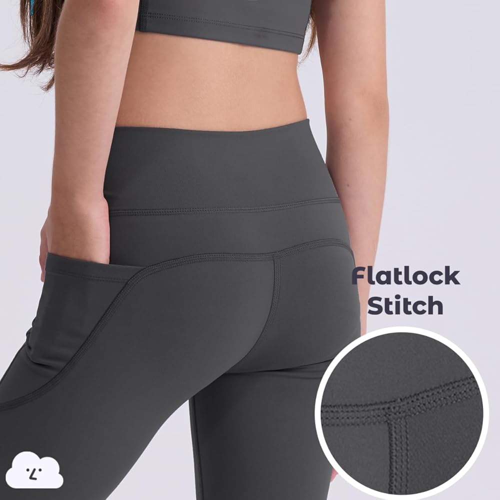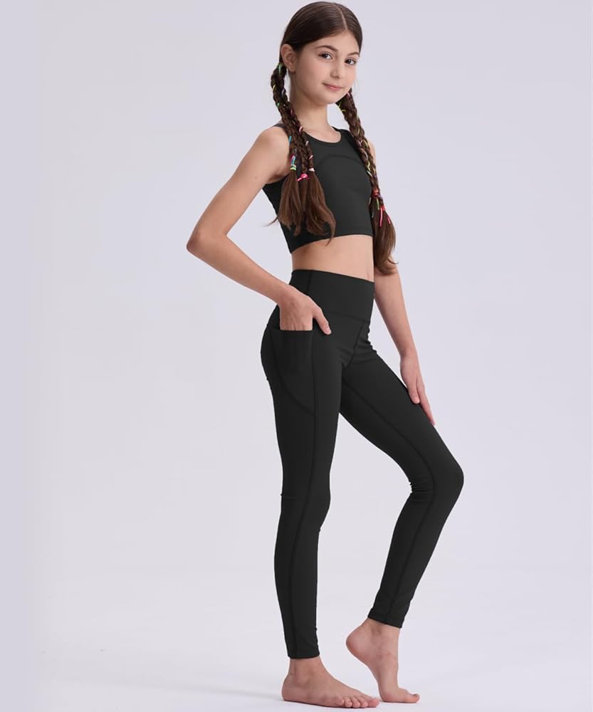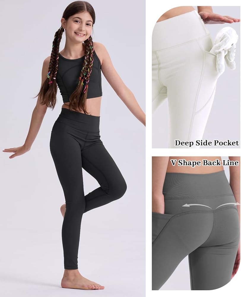 3 Pack Girls' Leggings with Pockets, Ankle Length Athletic Yoga Pants for Kids Clothes