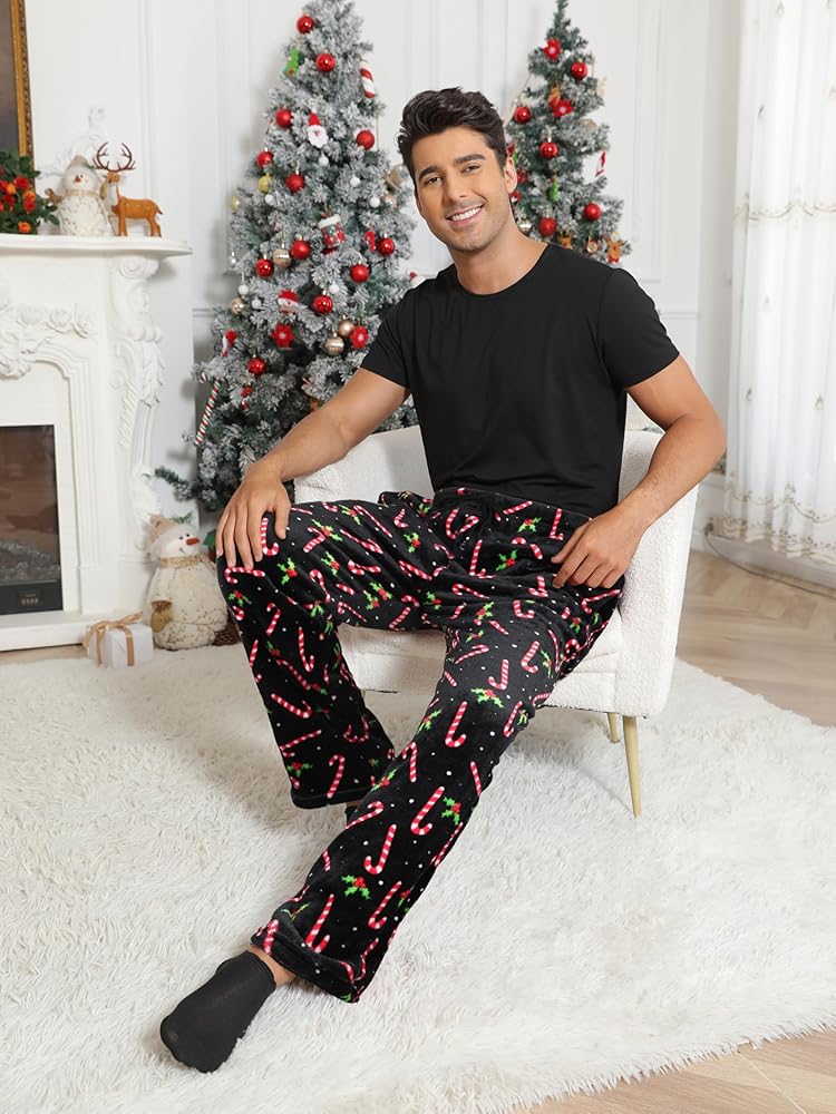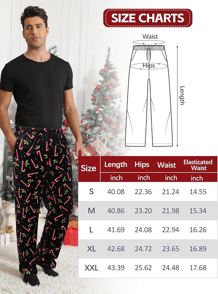 - CHRISTMAS PAJAMA PANTS: Made from 100% polyester flannel fleece, these men's plush sleep pants feature festive Christmas patterns for added holiday cheer.