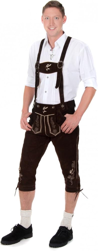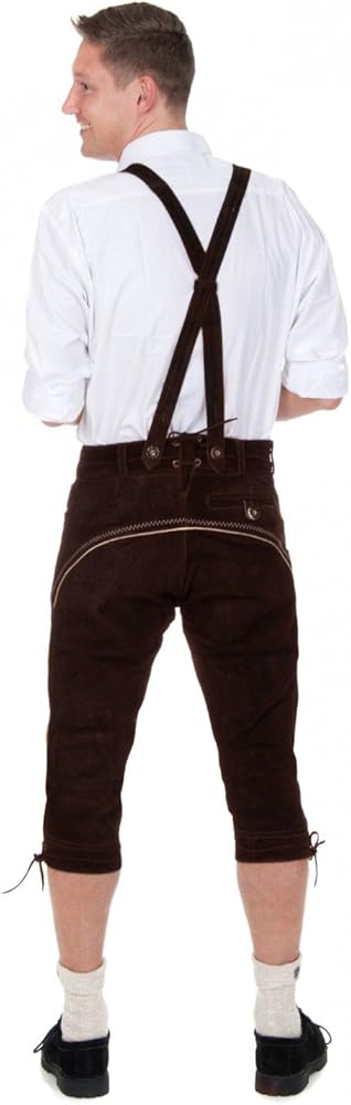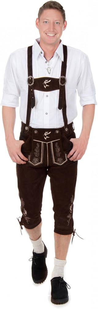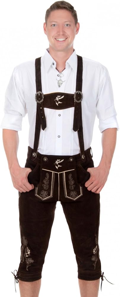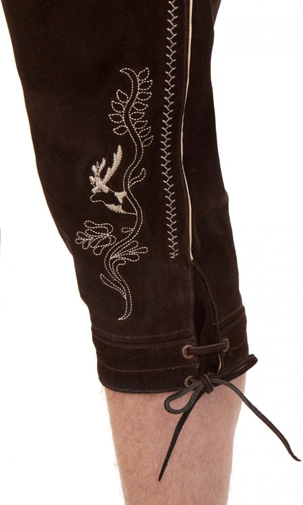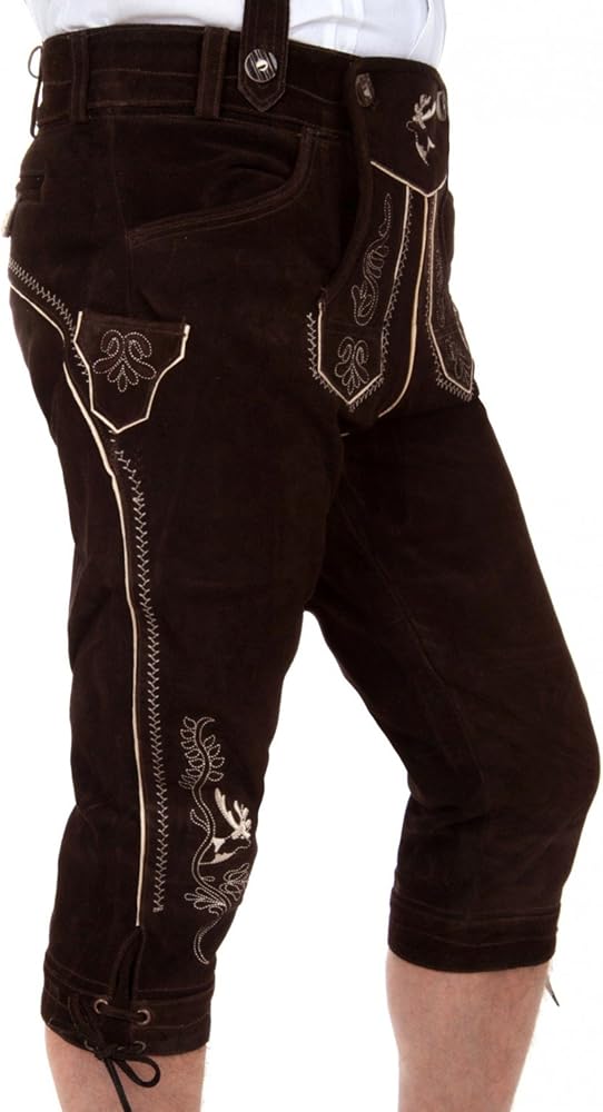 Bavarian Traditional Leather Trousers Lederhosen with Suspenders Darkbrown with Deer Embroidery