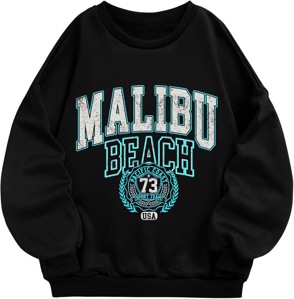 SOLY HUX Girl's Graphic Letter Print Sweatshirt Crewneck Long Sleeve Cute Drop Shoulder Pullover Tops