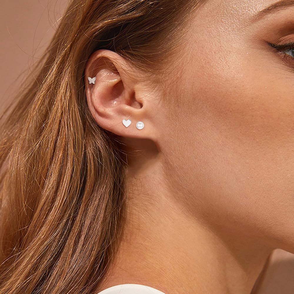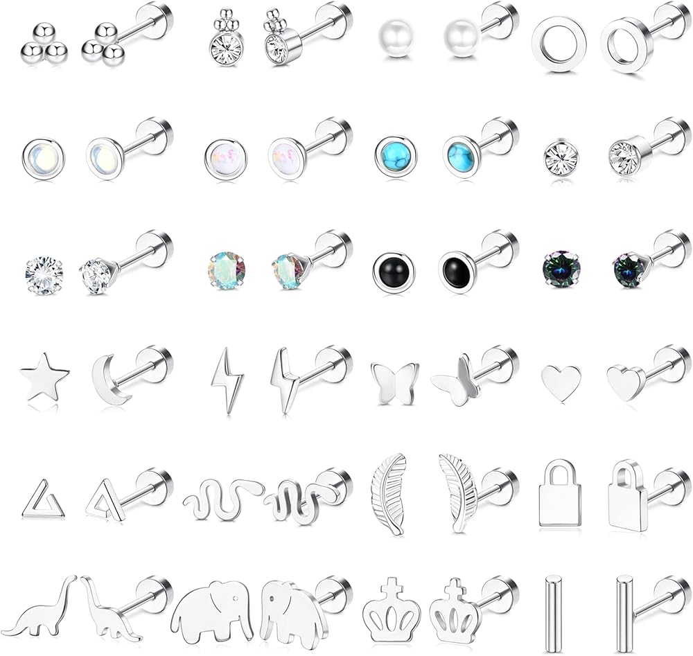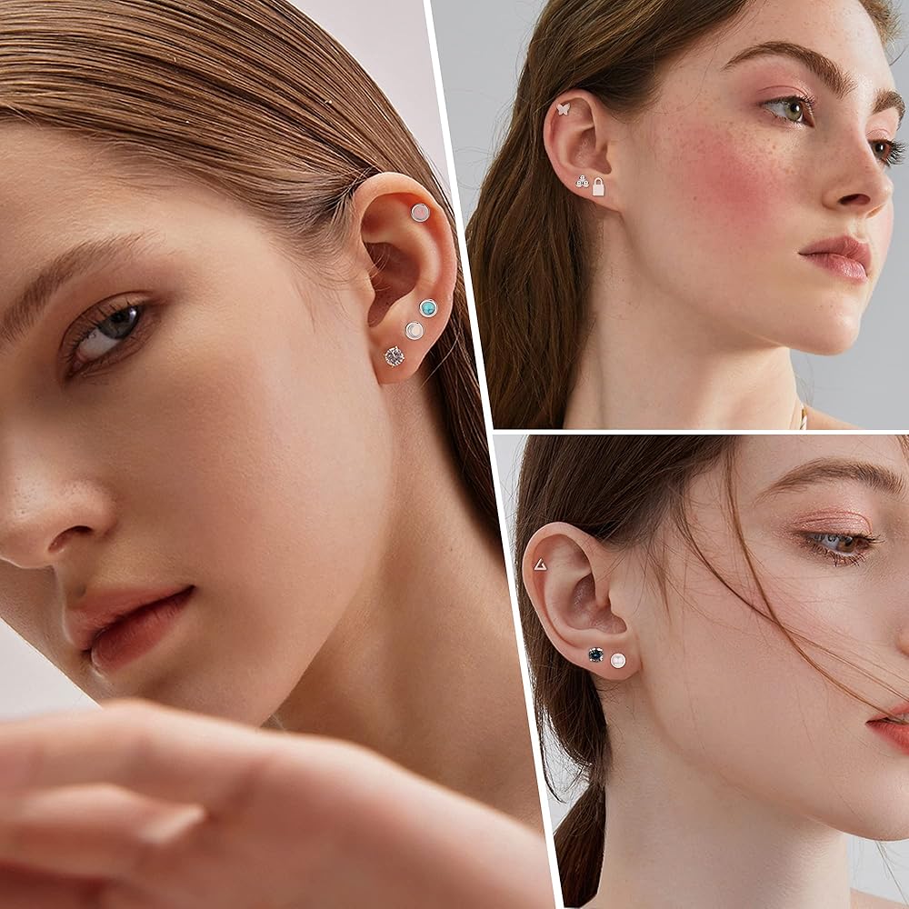 Comfortable Small Flatback Earrings--Internally screw back earrings,convenient flatback earrings,safe and easy to wear,not to lose or fall off.Hypoallergenic cartilage earring is suitable for women, men