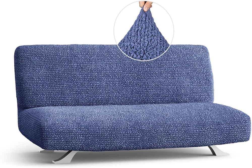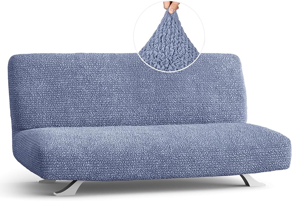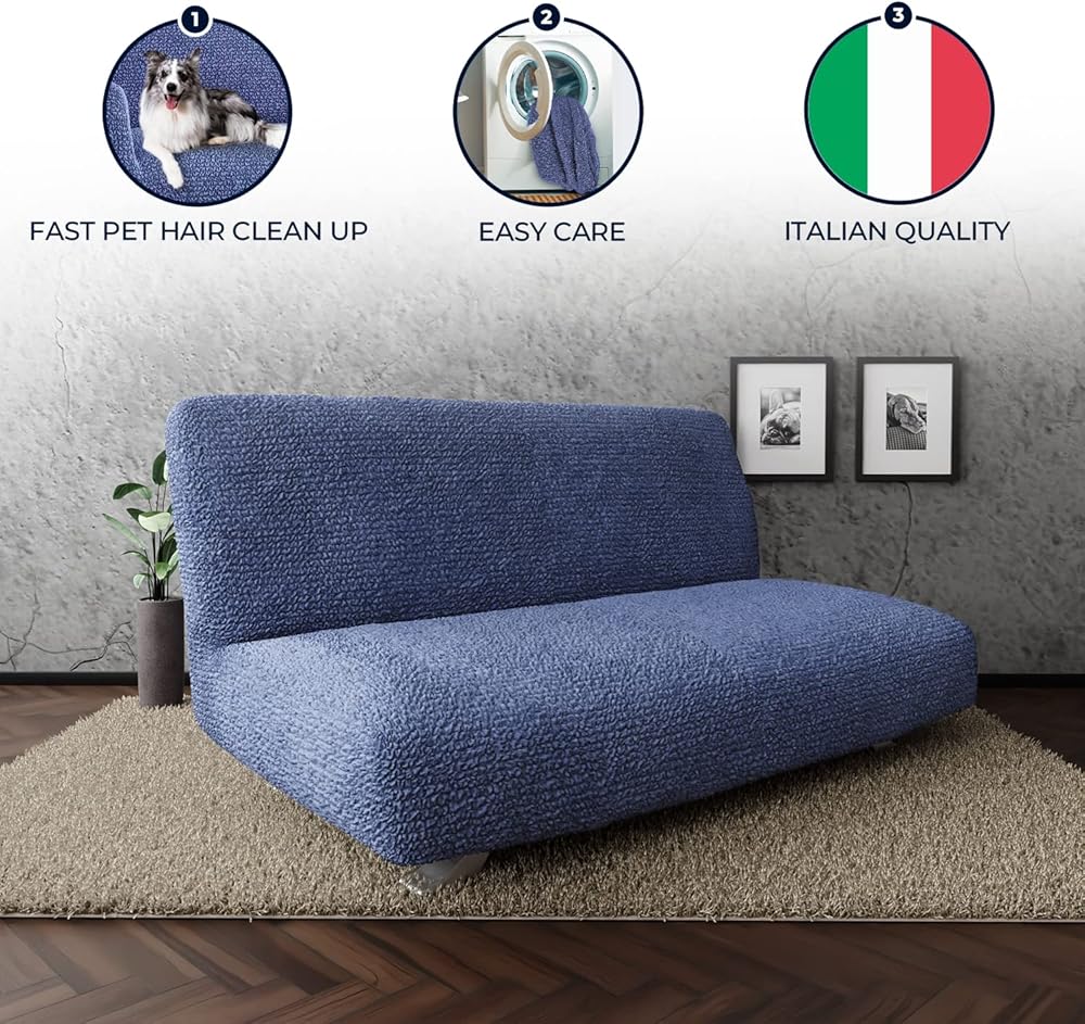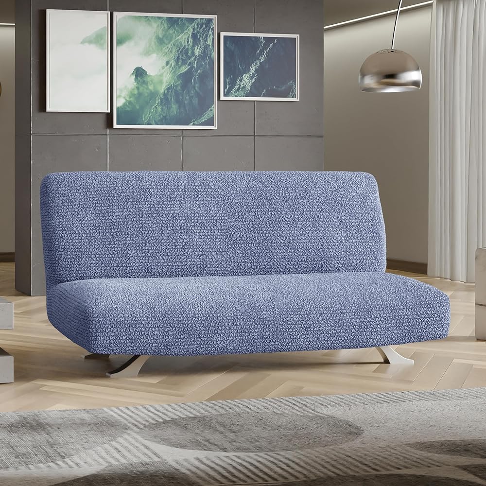 PAULATO BY GA.I.CO. Futon Cover - Armless Couch Cover Sofa Bed Slipcover Without Armrest - Soft Fabric Covers - 1-Piece Form Fit Stretch Futon Protector for Kid Pet - Microfibra - Blue